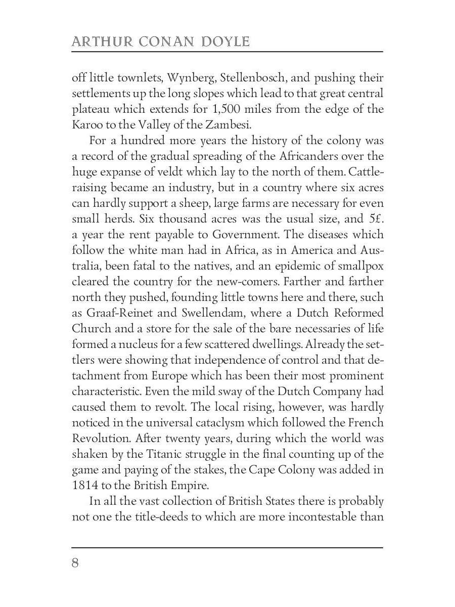 Arthur Conan Doyle (1859 - 1930) was an English writer best known for his detective stories about Sherlock Holmes. Intended as a sincere an attempt to describe the behavior of Great Britain during the Boer War, "The War in South Africa" contains the author's thoughts as a person who was a part of the events. Full of quotes from the eyewitnesses, the book openly dismisses the accusations of Britain being just the cruel aggressor and instigator of the war.| Издательство | Т8 RUGRAM |
