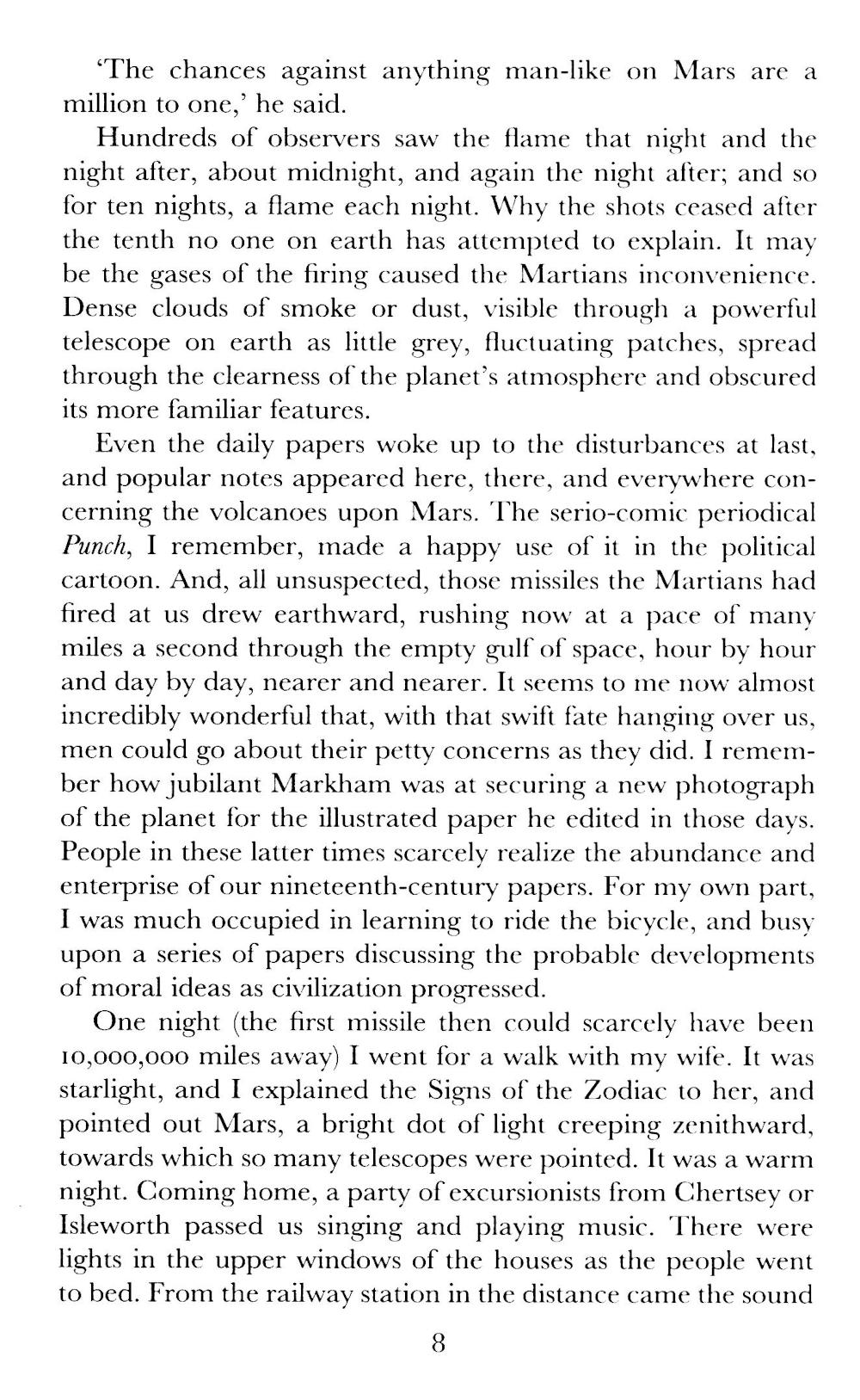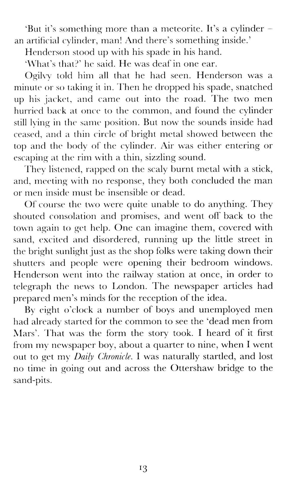 Shortly after astronomers observe explosions on the surface of Mars, meteor-like objects begin crashing into Earth. Martians emerge from their craters in large tripods, wiping out army units with heat-rays as they roam the English countryside. When the order is given to evacuate London, all seems lost. But there is one minor detail that the Martians did not plan for. H. G. Wells is credited with the popularisation of time travel in 1895 with The Time Machine, introducing the idea of time being the «fourth dimension» a decade before the publication of Einstein's first Relativity papers. In 1896, he imagined a mad scientist creating human-like beings from animals in The Island of Doctor Moreau, which created a growing interest in animal welfare throughout Europe. In 1897 with The Invisible Man, Wells shows how a formula could render one invisible, recognizing that an invisible eye would not be able to focus, thus rendering the invisible man blind. With The War of the Worlds in 1898, Wells established the idea that an advanced civilization could live on Mars, popularising the term 'martian' and the idea that aliens could invade Earth.| Издательство | Gollancz |
