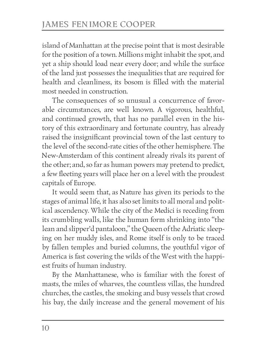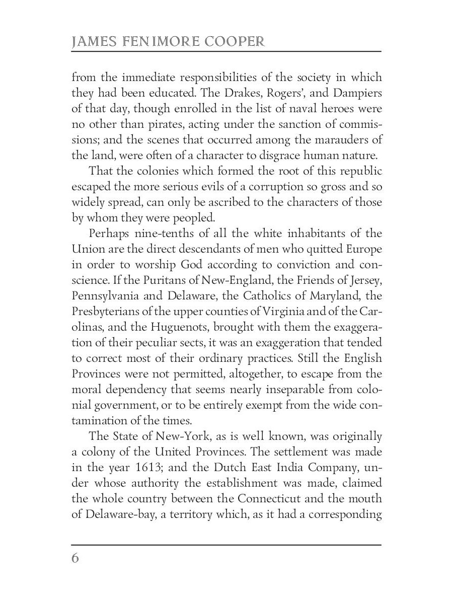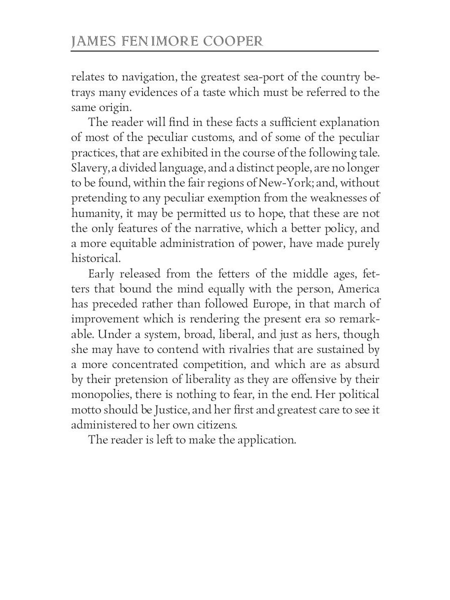 James Fenimore Cooper was a prolific and popular American writer of the first half of the 19th century. His historical romances of frontier and Indian life in the early American days created a unique form of American literature. The novel that launched his career was The Spy, a tale about counterespionage set during the Revolutionary War and published in 1821. He also wrote numerous sea stories, and his best-known works are five historical novels of the frontier period known as the Leatherstocking Tales. Among his most famous works is the Romantic novel The Last of the Mohicans, often regarded as his masterpiece.