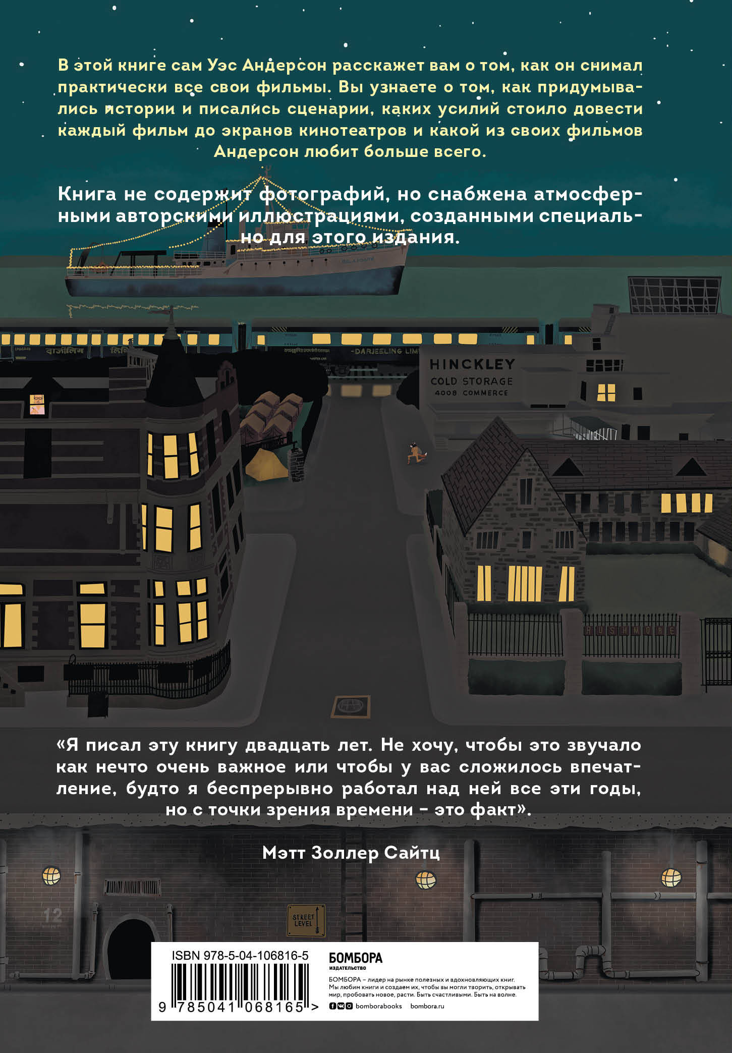 «Я писал эту книгу двадцать лет. Не хочу, чтобы это звучало как нечто очень важное, или, чтобы у вас сложилось впечатление, будто я беспрерывно работал над ней все эти годы, но с точки зрения времени - это факт». Мэтт Золлер Сайтц Фильмы Андерсона показывают, что магия искусства, передающая красоту разрушений, разочарований, неудач, упадка, даже уродства и жестокости, является подлинной только в той степени, в которой готова не умалчивать мрачные факты и уловки для изменения ситуации; она честна только в той степени, в которой выстраивает свою строгую и неизбежную коробку вокруг миниатюрной версии мира художника. Балансируя на грани, режиссер каждый раз создает многослойные трагикомедии, которые невозможно полностью разгадать с первого раза - и за это он так любим критиками и зрителями. В этой книге сам Уэс Андерсон расскажет вам о том, как он снимал практически все свои фильмы - «Бутылочная ракета», «Академия Рашмор», «Семейка Тененбаум», «Водная Жизнь», «Поезд на Дарджилинг», «Бесподобный мистер Фокс» и «Королевство полной луны». Вы узнаете о том, как придумывались истории и писались сценарии, каких усилий стоило довести каждый фильм до экранов кинотеатров и какой из своих фильмов Андерсон любит больше всего. Мэтт Золлер Сайтц является большим поклонником и хорошим другом замкнутого режиссера на протяжении многих лет, поэтому все истории получились откровенными, подробными, а главное - душевными. Каждая глава сопровождается атмосферными иллюстрациями, созданными специально для этой книги. Невероятный подарок для тех, кто видит в фильмах Андерсона больше, чем просто комедии!| Издательство | ООО "Издательство "Эксмо" |