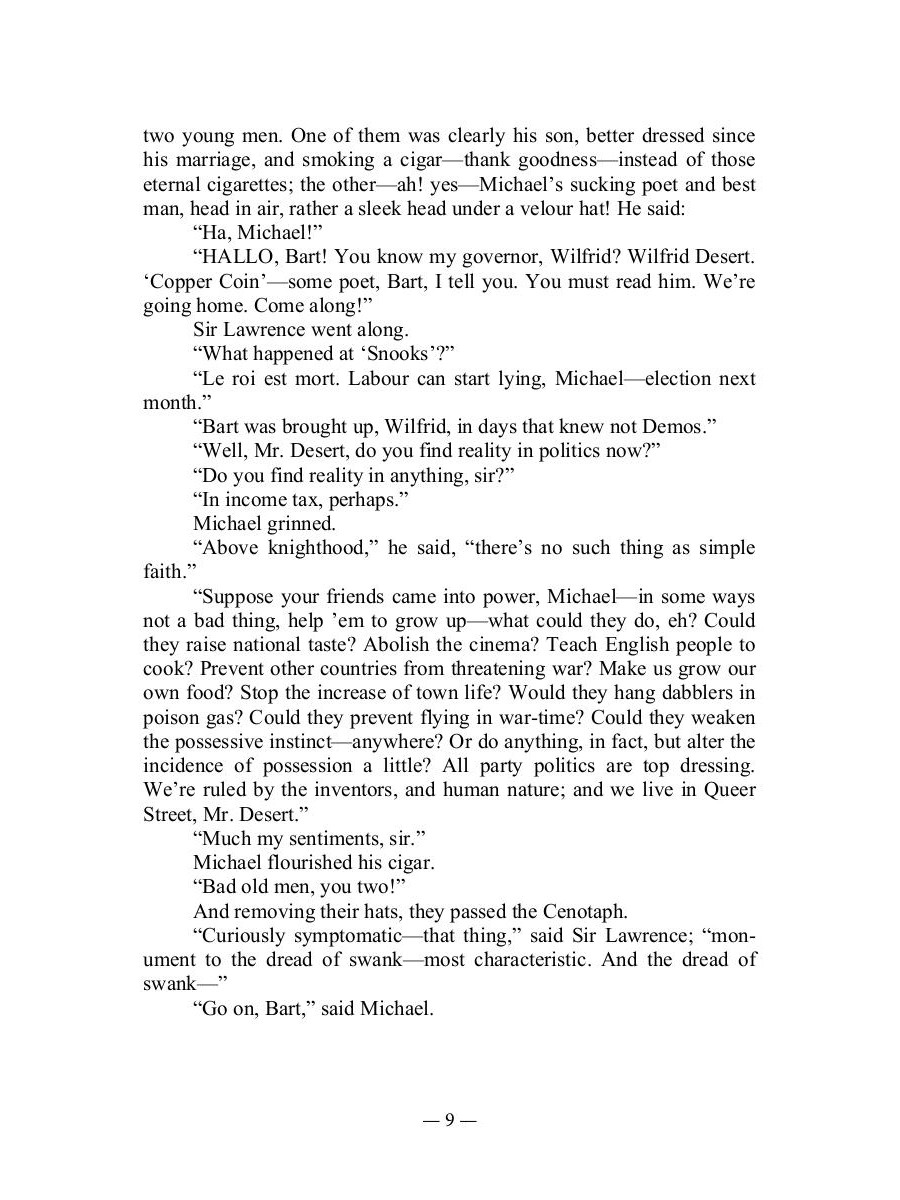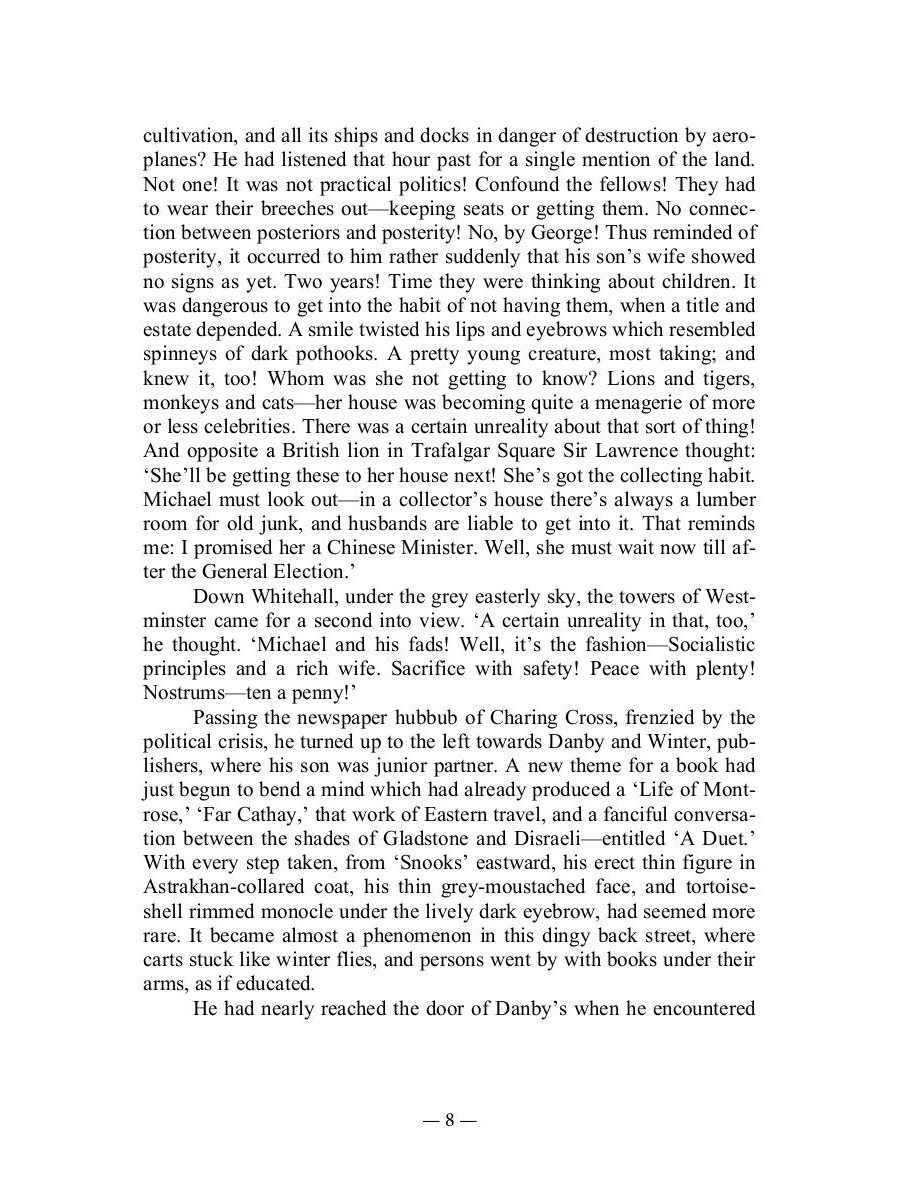 В чём-то комедийный роман «Белая обезьяна» - известное продолжение саги о Форсайтах, история второго поколения. Молодые Форсайты уже преодолели предрассудки викторианской эпохи, однако безнадёжно запутались в радостном гедонистическом безумии "новой эпохи"...