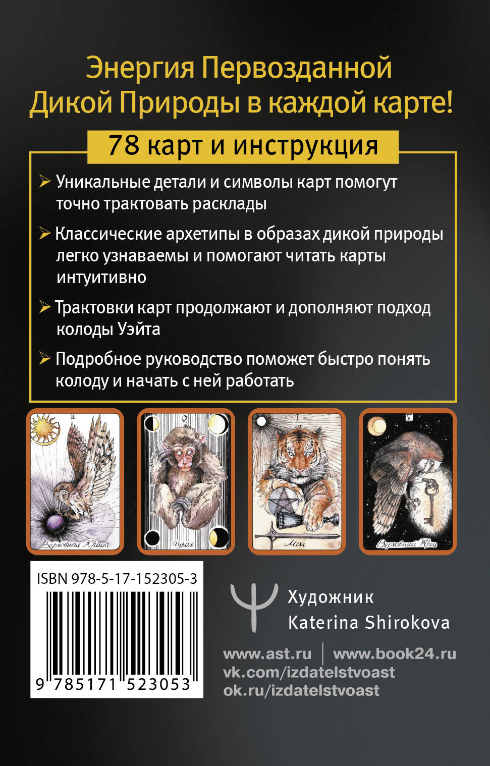 Колода "The Wild Magic Tarot. Таро Дикой магии" - новый шаг вперед для почитателей и исследователей системы Таро. Энергия Арканов Дикой Первозданной Природы поможет приоткрыть завесу Будущего, расшифровать знаки Настоящего, понять тайны, хранящиеся в Прошлом. Яркие, завораживающие образы позволят получить ответы на самые сокровенные вопросы. Доверьтесь этой уникальной колоде, и Природа поделится с вами своей мудростью. Откройтесь Первозданной энергии, и она поможет вам увидеть скрытую силу Таро. Из руководства вы узнаете: ● как подготовиться к раскладу; ● как настроиться на карты; ● технику безопасности при работе с Таро; ● подробное значение каждого Аркана в различных сферах жизни. Невероятной красоты карты наполнены деталями и символами, которые позволят вам как можно точнее толковать расклады. Вы сможете найти ответы на самые волнующие вопросы. Трактовки карт продолжают и дополняют подход знаменитой классической колоды Уэйта. Символы карт легко запоминаются, поэтому они подойдут и для новичков, осваивающих карты Таро, и для профессионалов. Комплект состоит из 78 карт и брошюры-инструкции, упакован в коробку, сделанную под размер карт. Его удобно брать с собой и он не занимает много места для хранения.