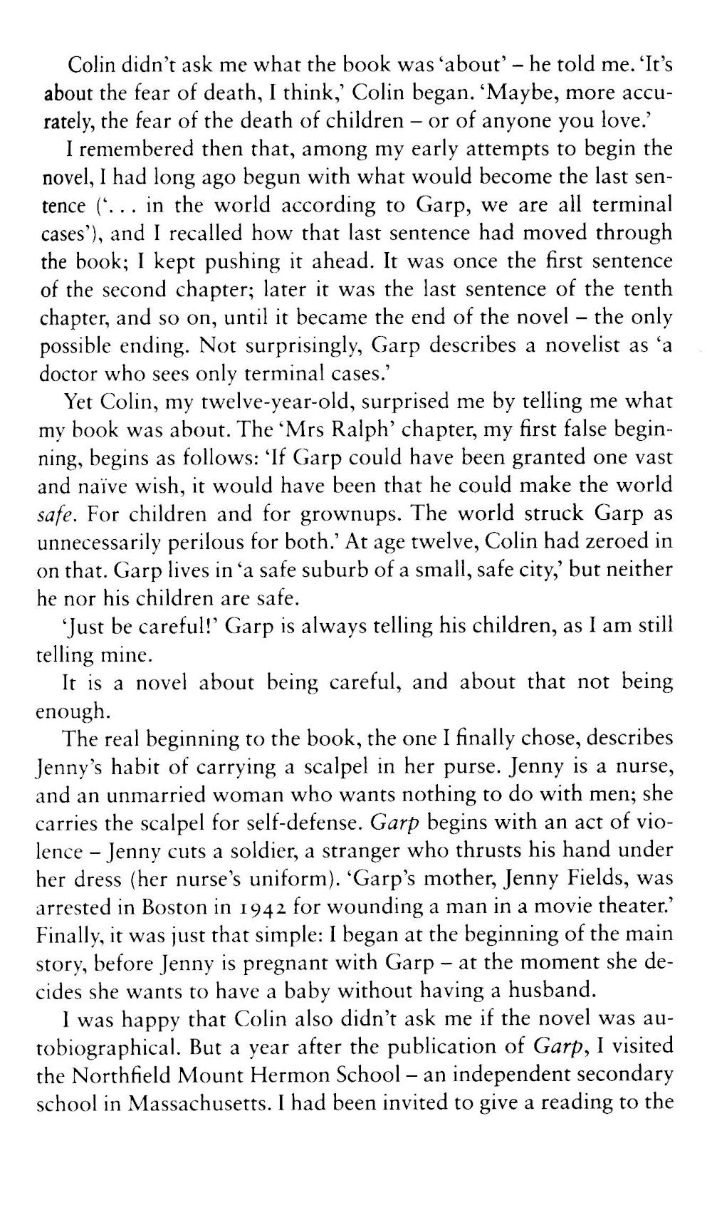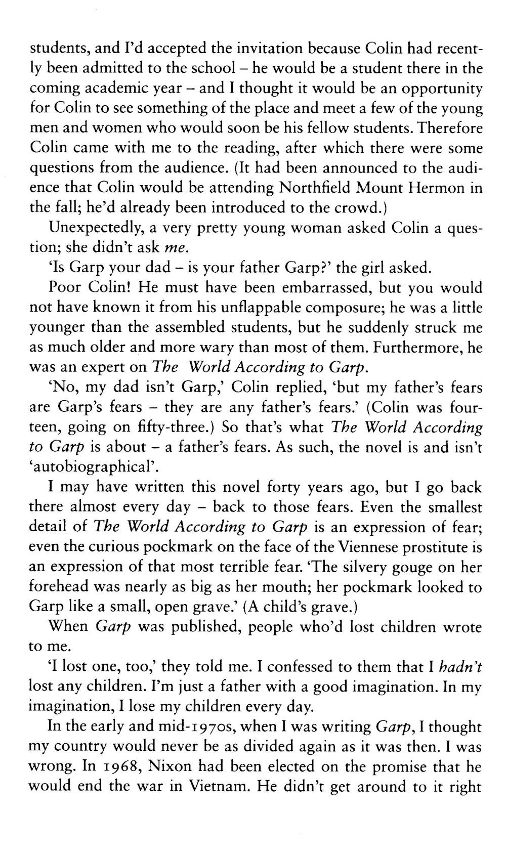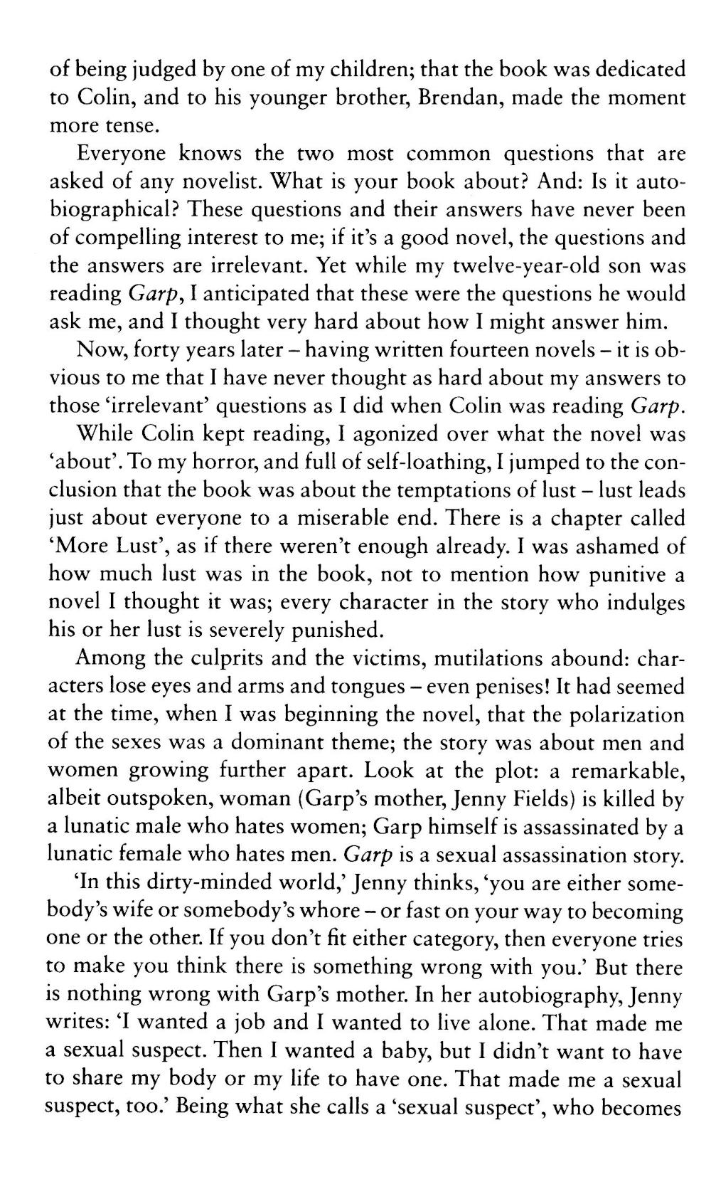 The opening sentence of John Irving's breakout novel, The World According to Garp, signals the start of sexual violence, which becomes increasingly political. «Garp's mother, Jenny Fields, was arrested in Boston in 1942 for wounding a man in a movie theater.» Jenny is an unmarried nurse; she becomes a single mom and a feminist leader, beloved but polarizing. Her son, Garp, is less beloved, but no less polarizing.| Издательство | Weidenfeld & Nicolson |