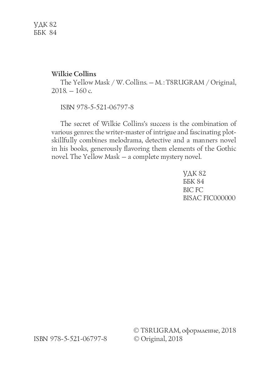 The secret of Wilkie Collins's success is the combination of various genres: the writer-master of intrigue and fascinating plot-skillfully combines melodrama, detective and a manners novel in his books, generously flavoring them elements of the Gothic novel. The Yellow Mask - a complete mystery novel.| Издательство | Т8 RUGRAM |