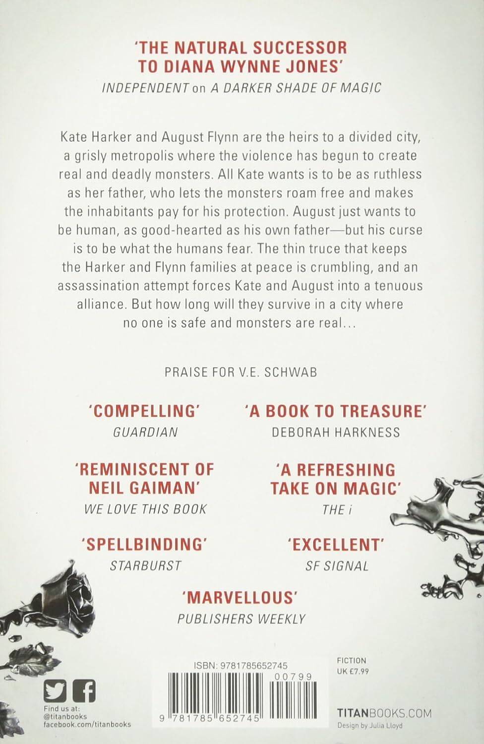 Kate Harker and August Flynn are the heirs to a divided city, a grisly metropolis where the violence has begun to create real and deadly monsters. All Kate wants is to be as ruthless as her father, who lets the monsters roam free and makes the inhabitants pay for his protection. August just wants to be human, as good-hearted as his own father-but his curse is to be what the humans fear. The thin truce that keeps the Harker and Flynn families at peace is crumbling, and an assassination attempt forces Kate and August into a tenuous alliance. But how long will they survive in a city where no one is safe and monsters are real… Кейт Харкер и Август Флинн - наследники разделенного города, ужасного мегаполиса, где насилие начало порождать настоящих и смертоносных монстров. Все, чего хочет Кейт, - это быть такой же безжалостной, как ее отец, который позволяет монстрам бродить на свободе и заставляет жителей платить за его защиту. Август просто хочет быть человеком, таким же добросердечным, как его собственный отец, но его проклятие - быть тем, кого боятся люди. Хрупкое перемирие, которое поддерживает мир в семьях Харкер и Флинн, рушится, а попытка убийства вынуждает Кейт и Августа заключить хрупкий союз. Но как долго они смогут выжить в городе, где никто не застрахован, а монстры реальны...