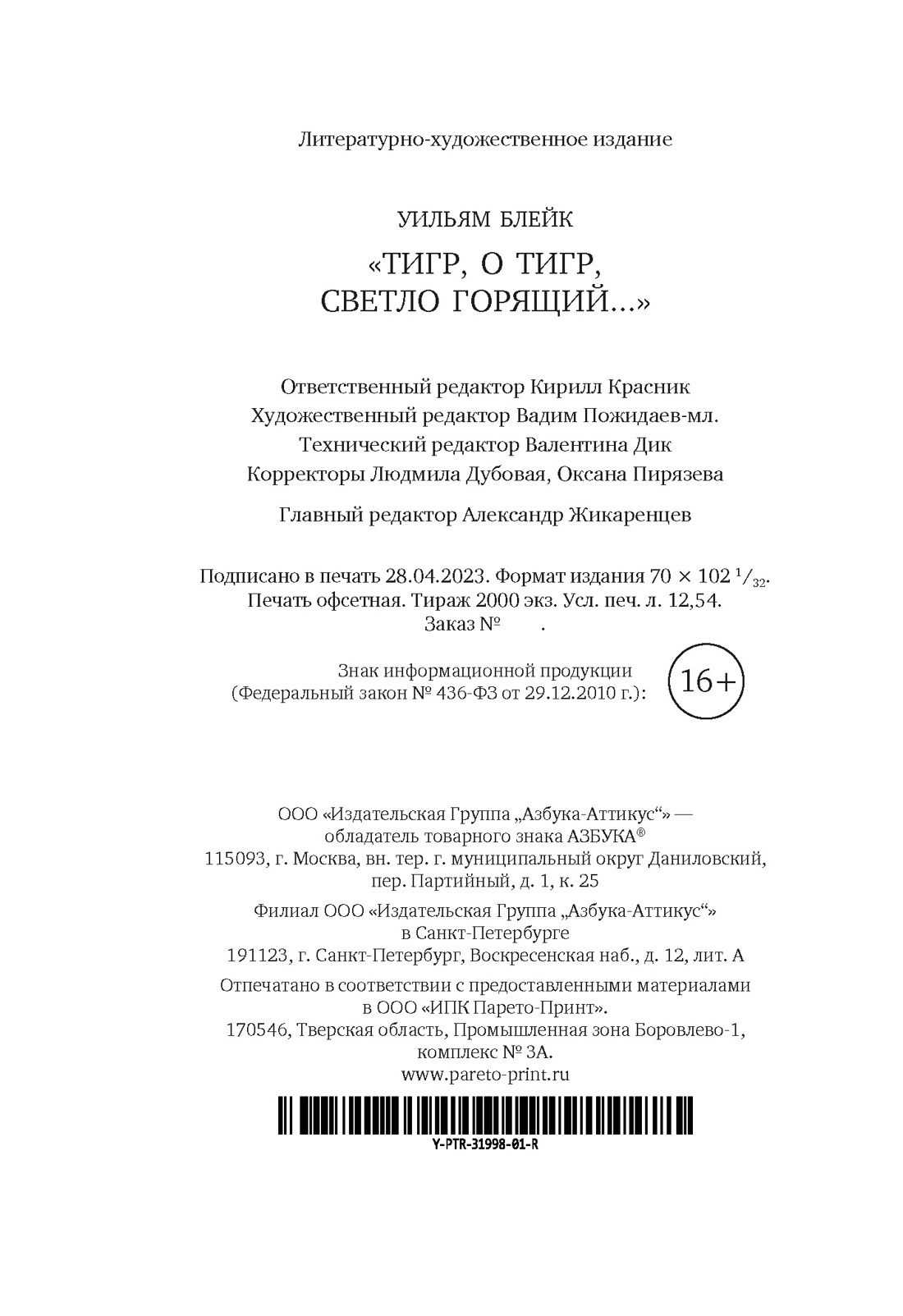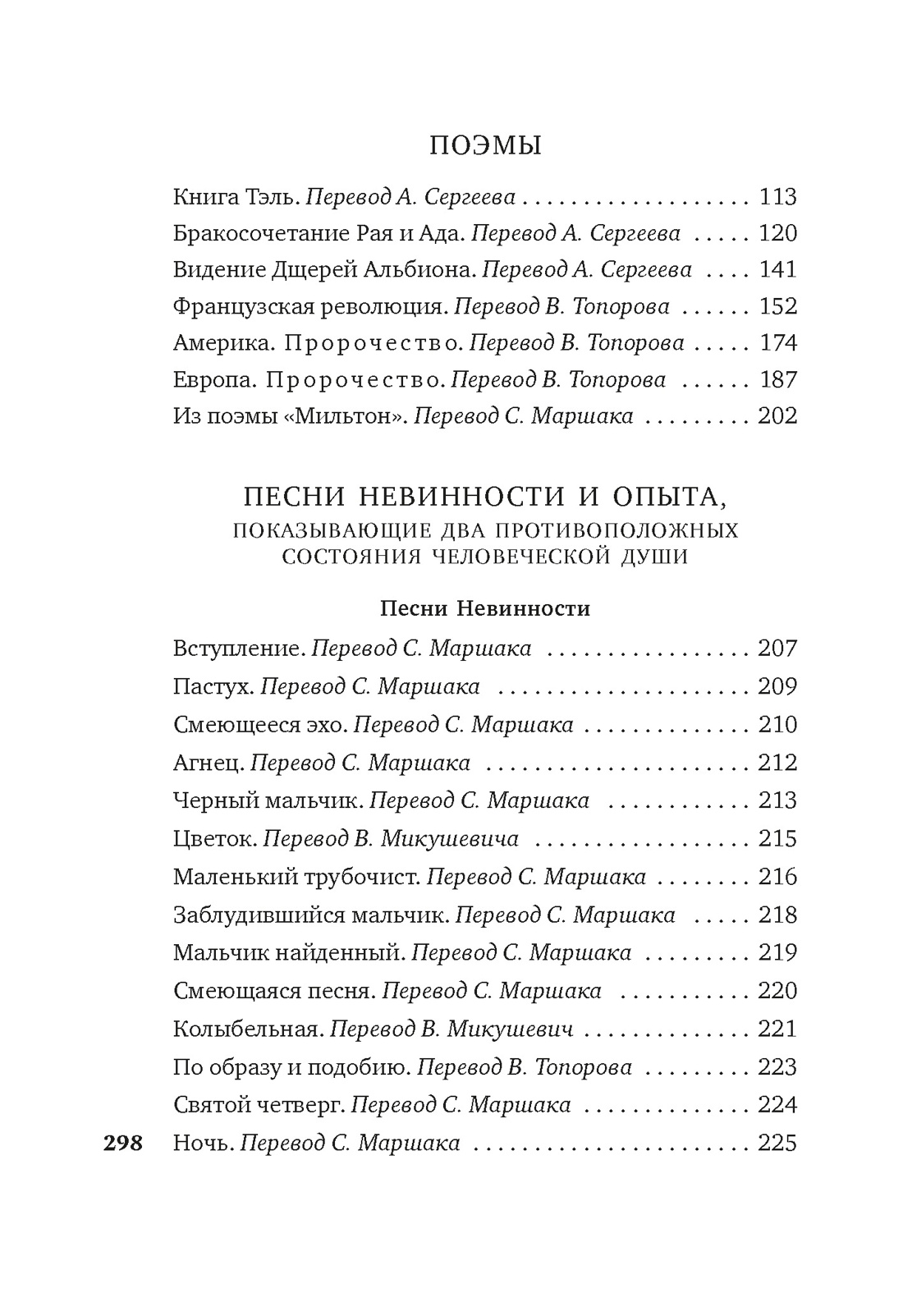 Уильям Блейк (1757-1827) - художник, визионер, один из величайших поэтов-романтиков XIX века, которому европейская культура обязана бескомпромиссными и очень самобытными произведениями искусства. Блейк утверждал, что видел ангелов и говорил со сверхъестественными существами, которые затем населяли его стихи и гравюры. В философии Блейка человеческое воображение было ключом к вратам вечности, овладеть которым под силу каждому, чей дух свободен. Его же собственное воображение, питаемое богатейшим наследием философии, религии и мифа, позволило создать поэтические миры, которые очаровывают, интригуют и восхищают уже многие поколения читателей. В настоящее издание вошли все самые известные поэтические произведения Блейка в классических переводах С. Маршака, А. Сергеева, В. Топорова, Б. Микушевича и Г. Кружкова.| Издательство | Азбука |