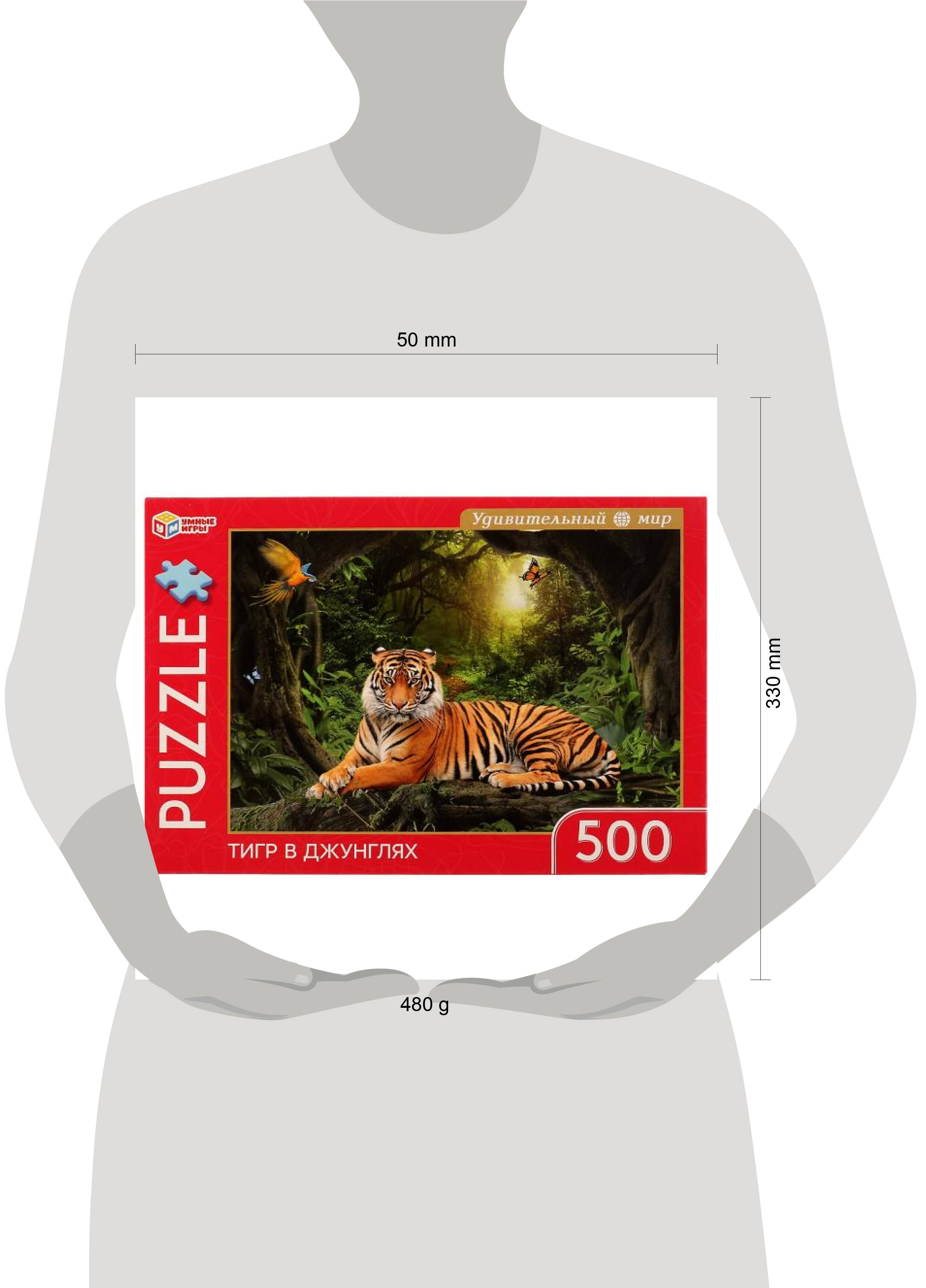 Тигр в джунглях. Удивительный мир. Пазлы классические в кор. Пазл 500 деталей. Умные игры в кор.10шт