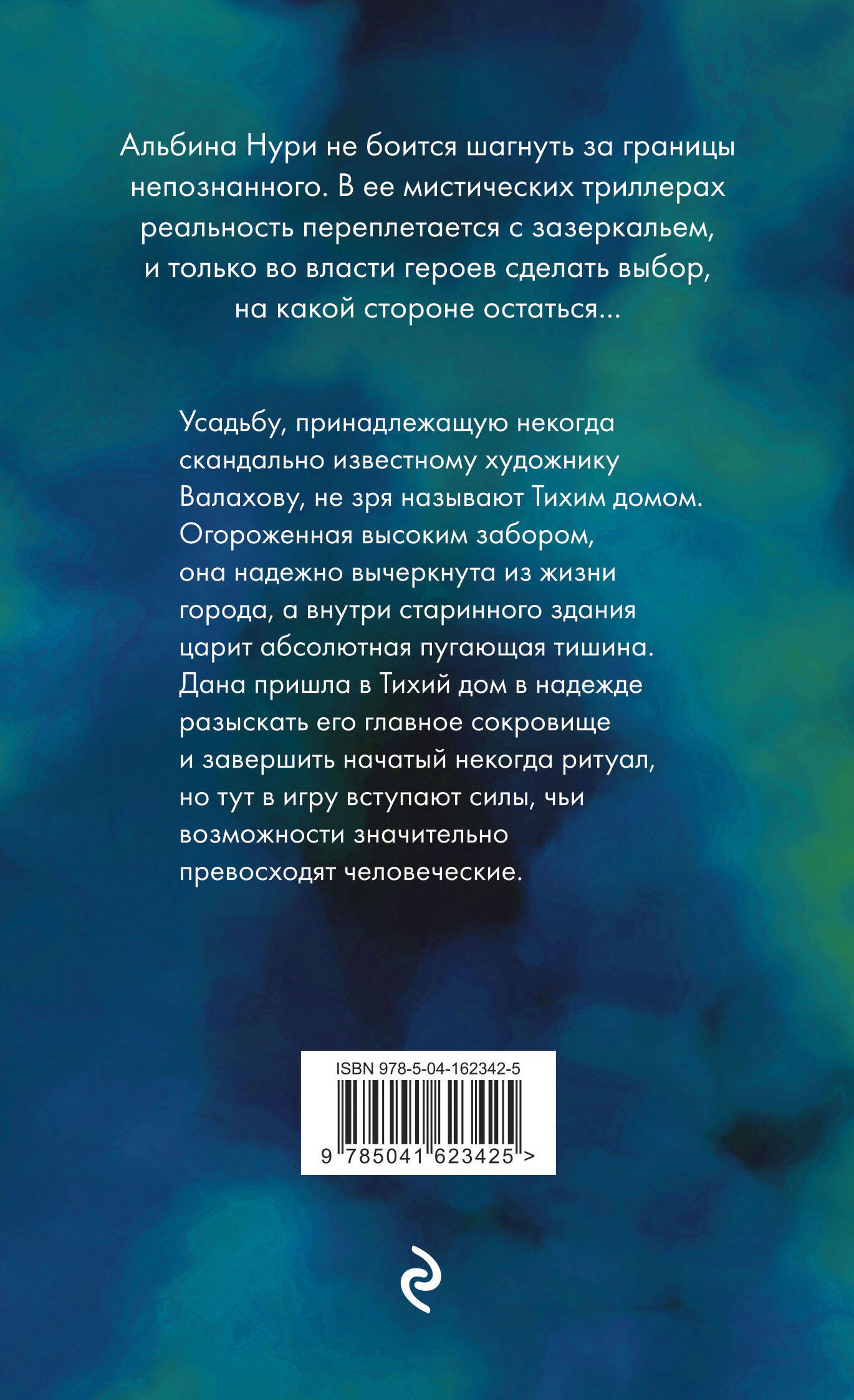 Усадьбу, принадлежащую некогда скандально известному художнику Валахову, не зря называют Тихим домом. Огороженная высоким забором, она надежно вычеркнута из жизни города, а внутри старинного здания царит абсолютная пугающая тишина. Дана пришла в Тихий дом в надежде разыскать его главное сокровище и завершить начатый некогда ритуал, но тут в игру вступают силы, чьи возможности значительно превосходят человеческие. Романы Альбины Нури - целый мир, в котором реальность переплетается с мистикой и потусторонним миром, где действуют законы, отличные от законов разума. Герои сталкиваются с необъяснимыми явлениями, идущими вразрез с обыденной картиной мира, и им предстоит через многое пройти, чтобы вернуть свою жизнь в привычное русло. Романы Альбины Нури нравятся как читателям, так и критикам.| Издательство | ООО "Издательство "Эксмо" |
