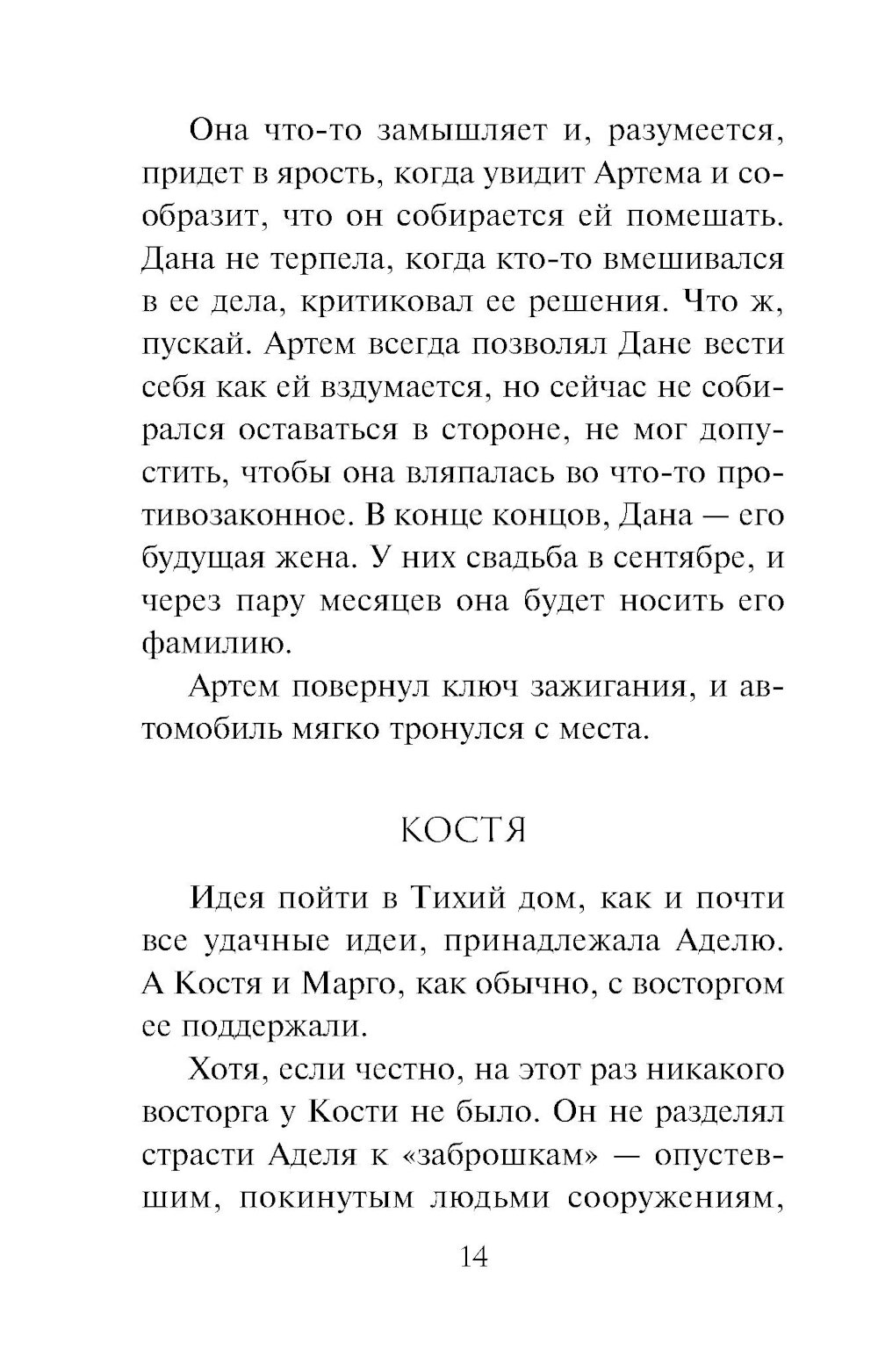 Усадьбу, принадлежащую некогда скандально известному художнику Валахову, не зря называют Тихим домом. Огороженная высоким забором, она надежно вычеркнута из жизни города, а внутри старинного здания царит абсолютная пугающая тишина. Дана пришла в Тихий дом в надежде разыскать его главное сокровище и завершить начатый некогда ритуал, но тут в игру вступают силы, чьи возможности значительно превосходят человеческие... Романы Альбины Нури - целый мир, в котором реальность переплетается с мистикой и потусторонним миром, где действуют законы, отличные от законов разума. Герои сталкиваются с необъяснимыми явлениями, идущими вразрез с обыденной картиной мира, и им предстоит через многое пройти, чтобы вернуть свою жизнь в привычное русло. Романы Альбины Нури нравятся как читателям, так и критикам.| Издательство | Эксмо |