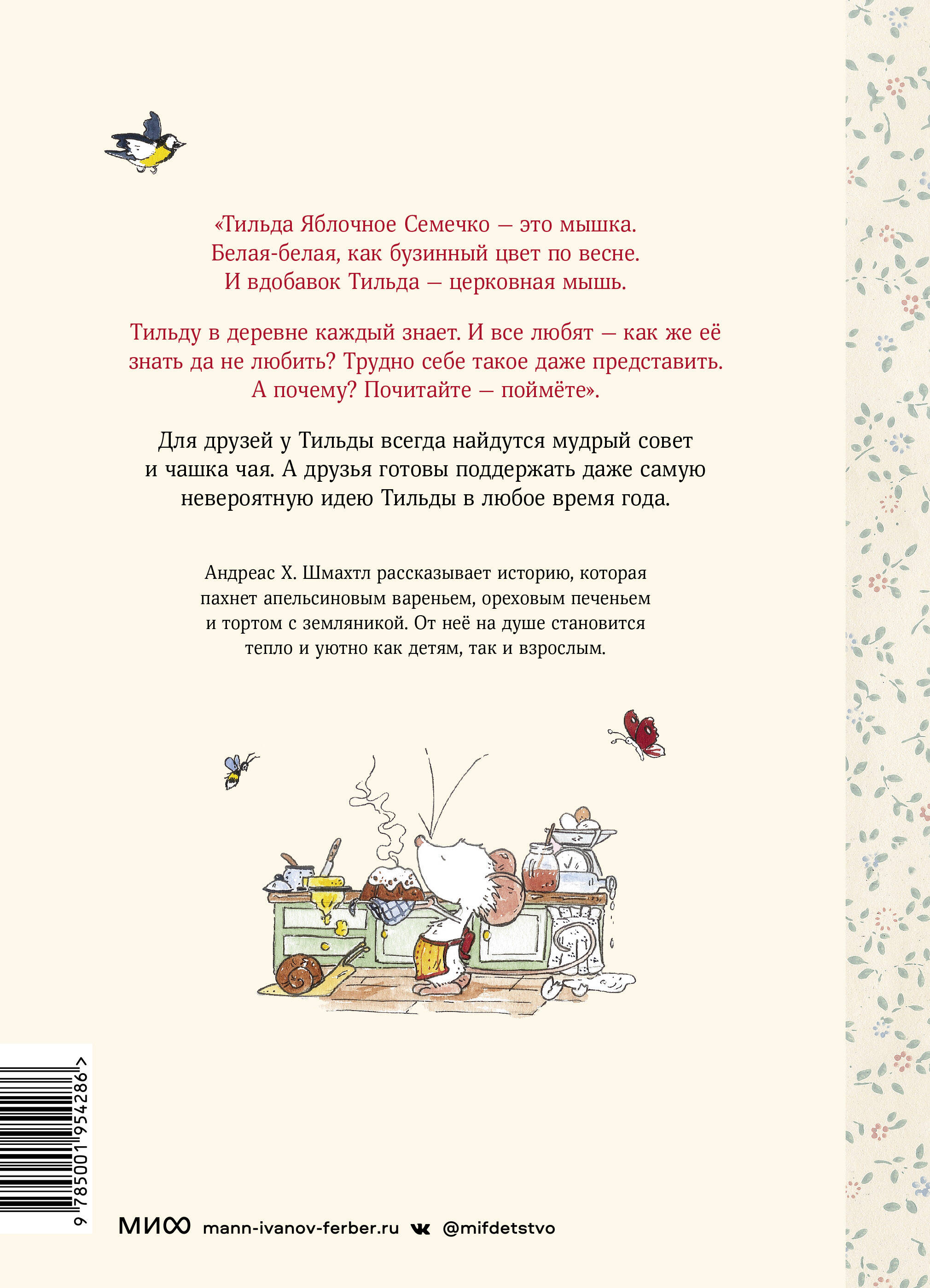 В деревеньке меж холмов живет Тильда - церковная мышка, белая, как бузинный цвет по весне. Она варит вкуснейшее апельсиновое варенье, знает, как отыскать клад и умеет уговорить ежа не впадать зимой в спячку. Андреас Х. Шмахтл рассказывает сказочную историю, от которой становится тепло и уютно и детям, и взрослым.