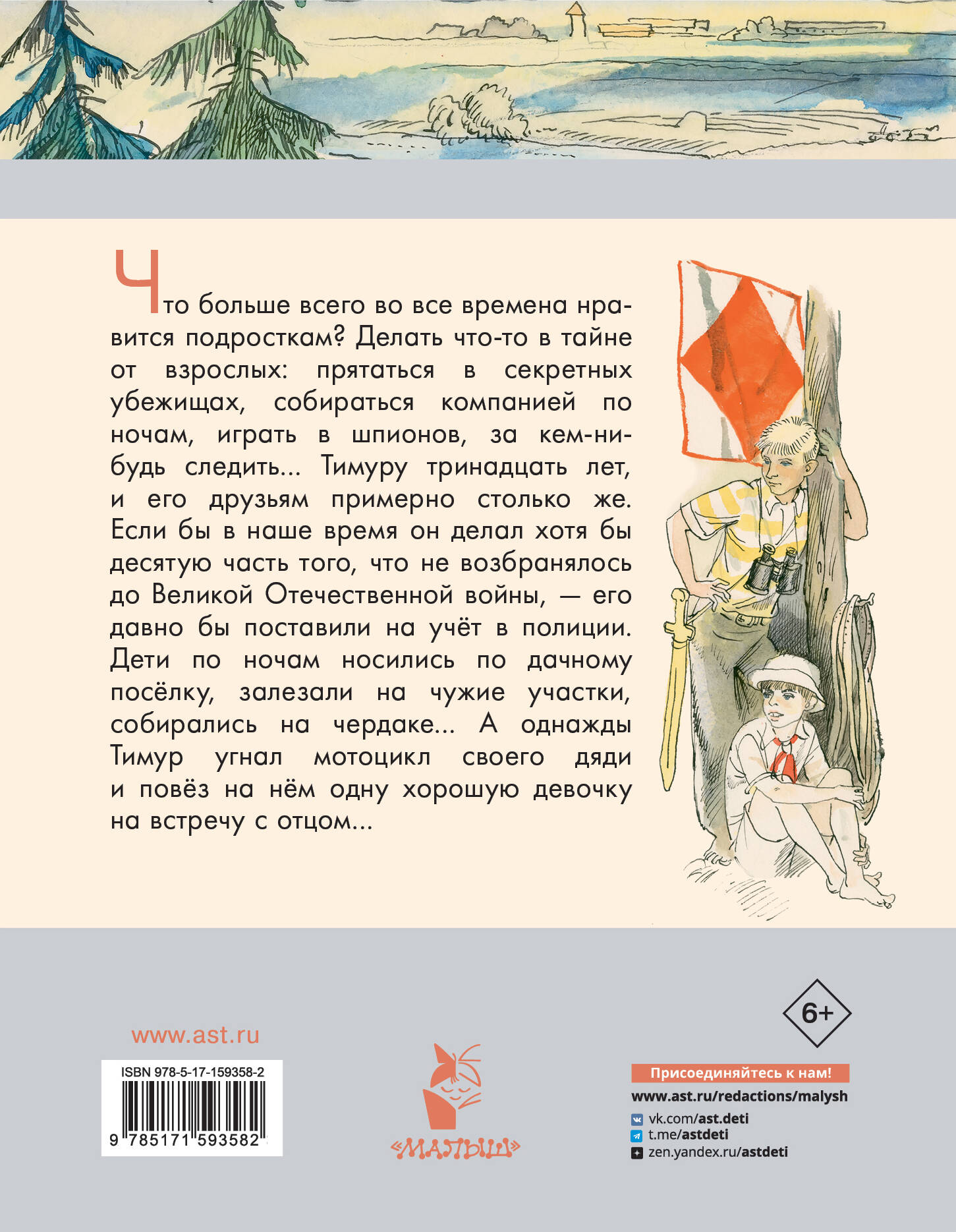 Что больше всего во все времена нравится подросткам? Делать что‑то в тайне от взрослых: прятаться в секретных убежищах, собираться компанией по ночам, играть в шпионов, за кем‑нибудь следить… Тимуру тринадцать лет, и его друзьям примерно столько же. Если бы в наше время он делал хотя бы десятую часть того, что не возбранялось до Великой Отечественной войны, - его давно бы поставили на учёт в полиции. Дети по ночам носились по дачному посёлку, залезали на чужие участки, собирались на чердаке… А однажды Тимур угнал мотоцикл своего дяди и повёз на нём одну хорошую девочку на встречу с отцом…| Издательство | Издательство "АСТ" |