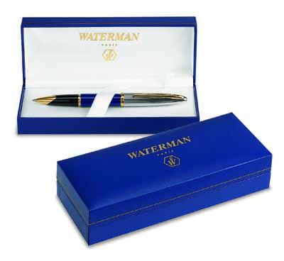 С съемным соплом, чернил цвет черный. Производитель Waterman, производящая страна Франция. Ручка в комплекте с коробкой.