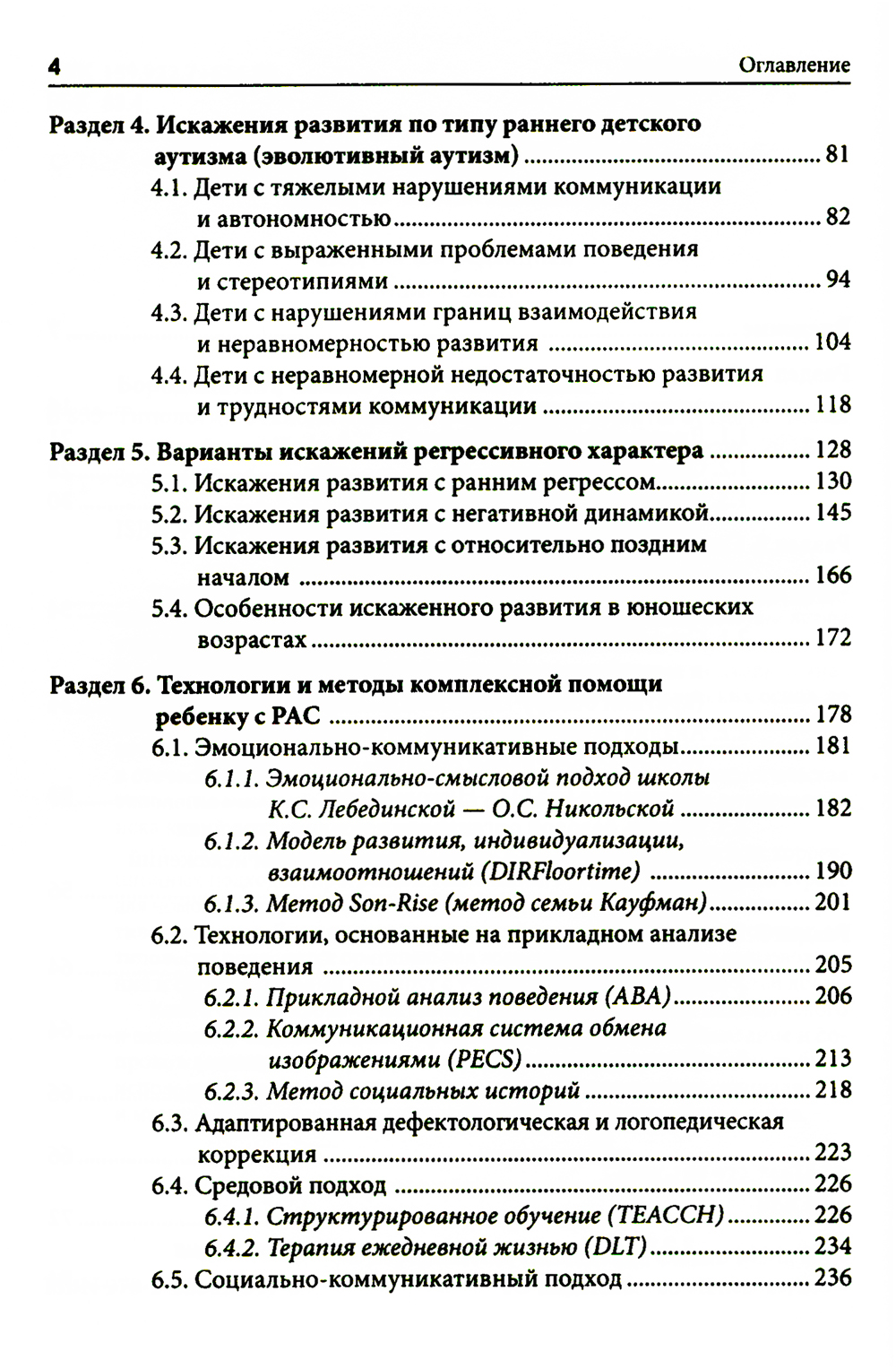 Отдельный раздел посвящен обзору и анализу практически всех коррекционных подходов, программ и технологий, используемых в нашей стране для помощи детям с РАС, включая условия применения, ограничения и противопоказания. Для каждого варианта и формы психолого-педагогической типологии приводится оригинальная логистика комплексного сопровождения и образовательный маршрут с учетом возрастных особенностей детей.
