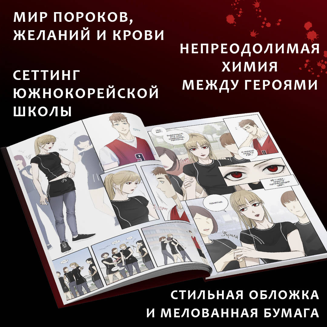 Погрузитесь в мир пороков, желаний и крови в новом остросюжетном вебтуне! «Как так вышло?» - он стоял в переулке, переполненном бездыханными телами. Прошлое Рэймонда пропитано ночными кошмарами и чувством вины. Он находит в себе силы начать жизнь с чистого листа. Рэй переводится в новую школу, где встречает Леу, девушку с пьянящими красными глазами. Вот только за красотой скрывается настоящий монстр. Рэй становится свидетелем кровавой расправы, и теперь его жизнь висит на волоске… Почему при виде такой жуткой картины она сохраняет спокойствие? Как так вышло, что его сердце принадлежит вампиру? Опасные, но безумно привлекательные существа ночи, любовь и безудержная жажда для истинных ценителей жанра! Комикс заворожит фанатов вебтуна «Белая кровь» и книги «Кровавое приданное»! Страстные взаимоотношения героев и невероятное притяжение между ними напомнят о персонажах сериала «Дневники вампира», а сеттинг южнокорейской школы порадует читателей манхв и маньхуа. Мелованная бумага, передающая все оттенки пленительных сцен, и стильная обложка не оставят равнодушными любителей фэнтези книг.| Издательство | ООО "Издательство "Эксмо" |