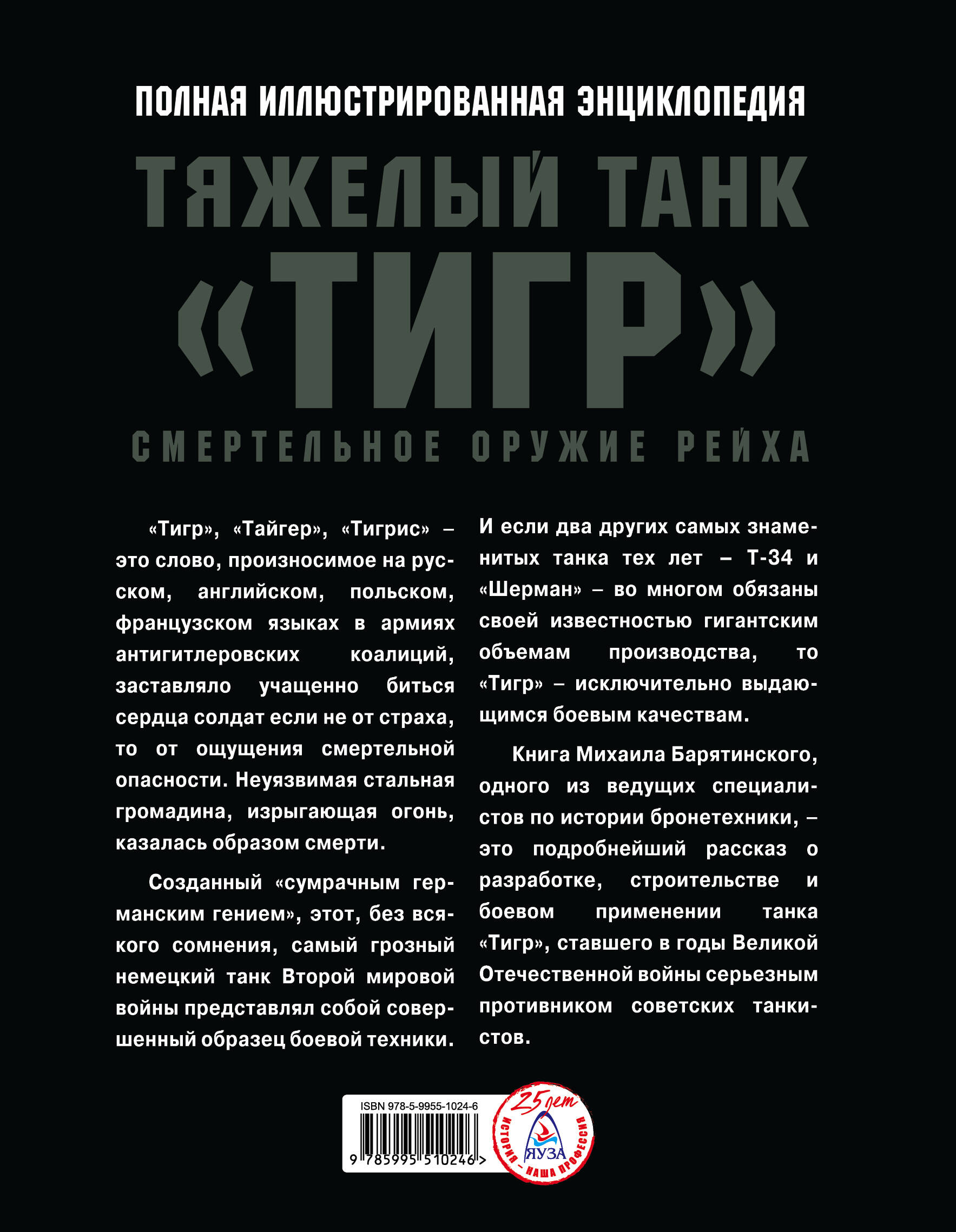 "Тигр", "Тайгер", "Тигрис" - это слово, произносимое на русском, английском, польском, французском языках в армиях антигитлеровских коалиций, заставляло учащенно биться сердца солдат если не от страха, то от ощущения смертельной опасности. Неуязвимая стальная громадина, изрыгающая огонь, казалась образом смерти. Созданный "сумрачным германским гением", этот, без всякого сомнения, самый грозный немецкий танк Второй мировой войны представлял собой совершенный образец боевой техники. И если два других самых знаменитых танка тех лет - Т-34 и "Шерман" - во многом обязаны своей известностью гигантским объемам производства, то "Тигр" - исключительно выдающимися боевым качествам. Книга Михаила Барятинского, одного из ведущего специалистов по истории бронетехники - это подробнейший рассказ о разработке, строительстве и боевом применении танка "Тигр", ставшего в годы Великой Отечественной войны серьезным противником советских танкистов.