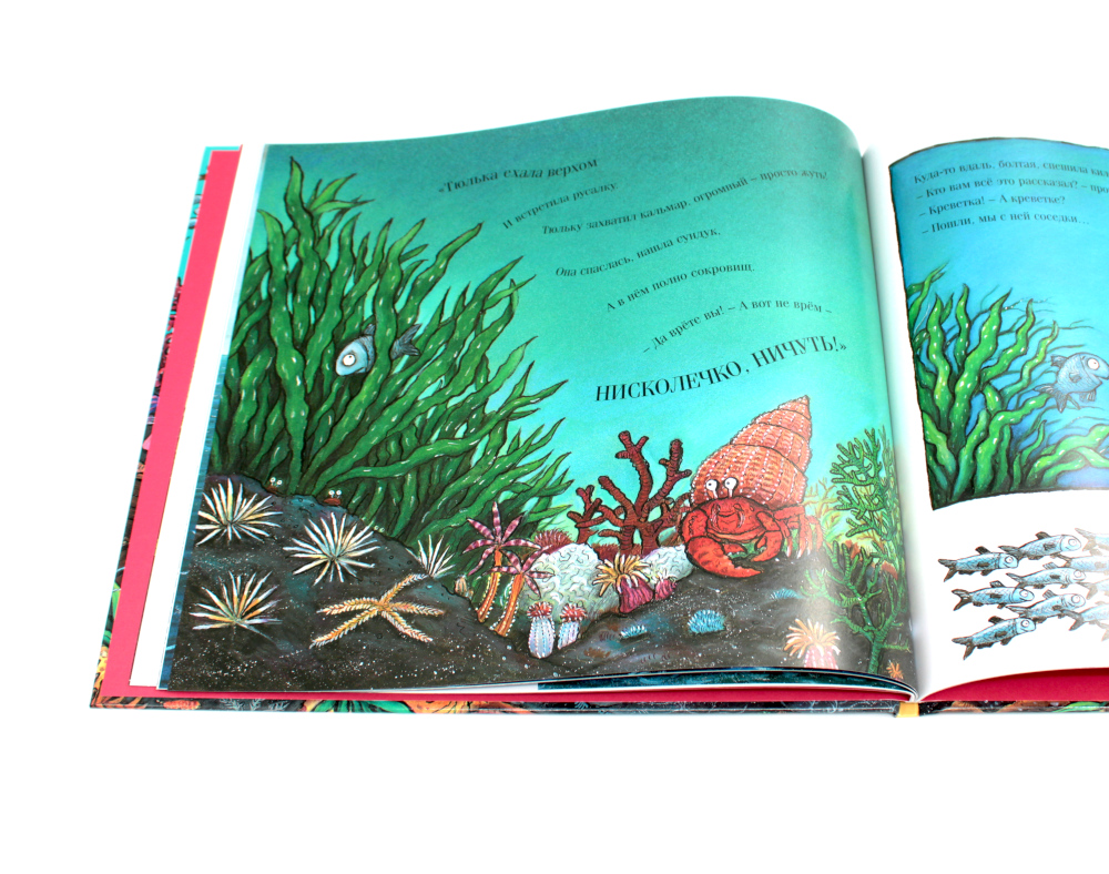 "Жила на свете Тюлька, малюсенькая рыбка, Простая рыбка в сером чешуйчатом пальто…" Рыбка Тюлька каждое утро опаздывает в школу и всякий раз под новым предлогом: то она скакала на морском коньке, то каталась на скате, то нашла сундук сокровищ, то была в плену у гигантского кальмара. Никто не верит в Тюлькины истории, ведь всем известно, что маленькая Тюлька - большая выдумщица. Но однажды Тюлька, чудом спасшись из рыбацких сетей, заблудилась в океане. Помогут ли теперь Тюльке ее «выдумки»? ...И верите ли вы им?| Издательство | Машины творения |