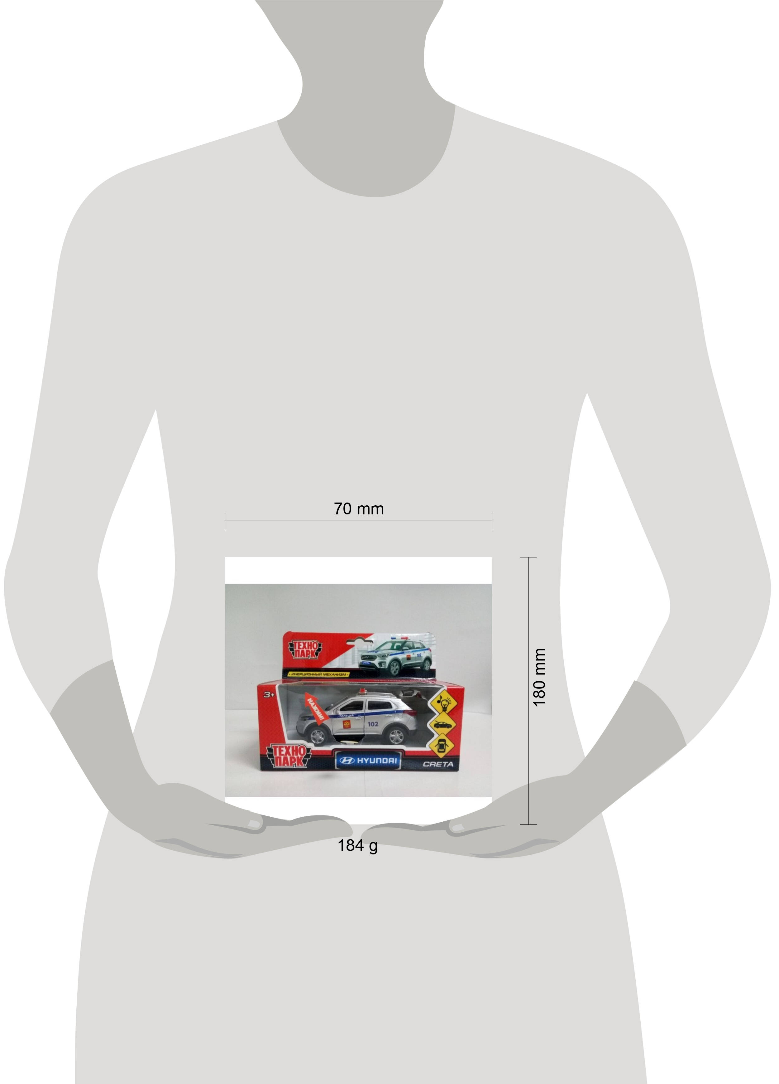 Аннотация: ТМ Технопарк. Машина металл "HYUNDAI CRETA ПОЛИЦИЯ", дл 12 см, св-зв, откр дв, багаж. в кор.2*36шт