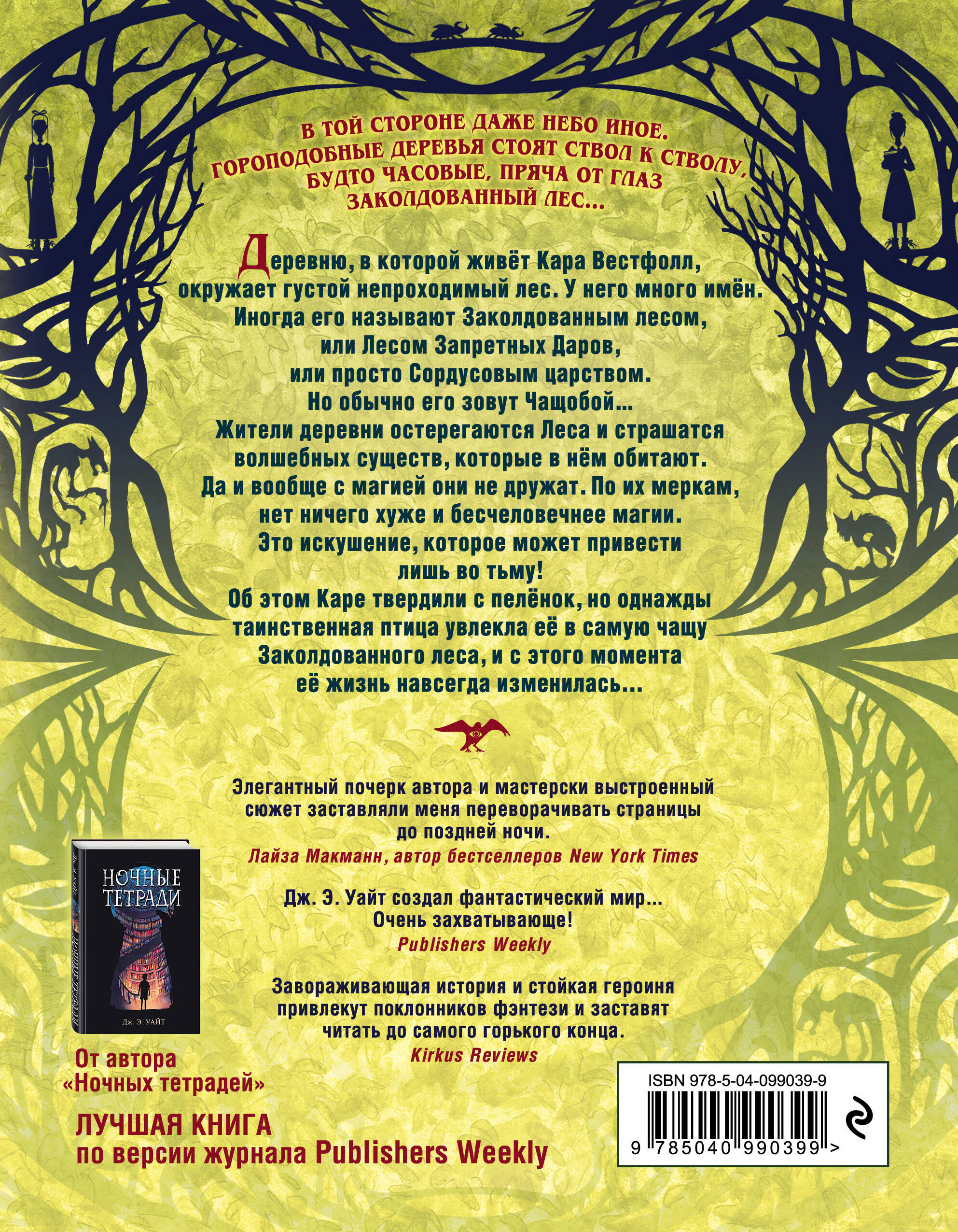 Когда Каре Вестфолл было пять лет, её мать осудили за самое ужасное из всех преступлений - колдовство. Сейчас Кара и её младший брат Тафф по-прежнему живут в деревне, где считается, что нет ничего более злого и ужасного, чем магия… Но больше магии они боятся таинственного Заколдованного леса, покрывающего почти весь остров. У него много названий, и жители деревни живут в страхе перед густыми зарослями и ужасными существами, которые там обитают. Когда Каре исполняется двенадцать, волшебная птица заманивает её в лесную чащу, и она обнаруживает там магический гримуар, который когда-то принадлежал её матери. Кара открывает в себе особенный дар колдовства. Но её тайну узнаёт Грейс, дочь старосты деревни, и грозится рассказать всем, что Кара - ведьма!..| Издательство | ООО "Издательство "Эксмо" |