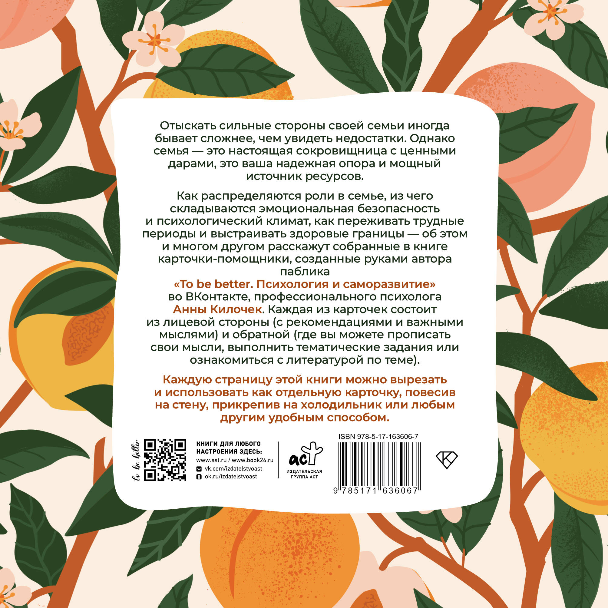 Отыскать сильные стороны своей семьи иногда бывает сложнее, чем увидеть недостатки. Однако семья - это настоящая сокровищница с ценными дарами, это ваша надежная опора и мощный источник ресурсов. Как распределяются роли в семье, из чего складываются эмоциональная безопасность и психологический климат, как переживать трудные периоды и выстраивать здоровые границы - об этом и многом другом расскажут собранные в книге карточки-помощники, созданные руками автора паблика "To be better. Психология и саморазвитие" во ВКонтакте, профессионального психолога Анны Килочек. Каждая из карточек состоит из лицевой стороны (с рекомендациями и важными мыслями) и обратной (где вы можете прописать свои мысли, выполнить тематические задания или ознакомиться с литературой по теме).| Издательство | Издательство "АСТ" |