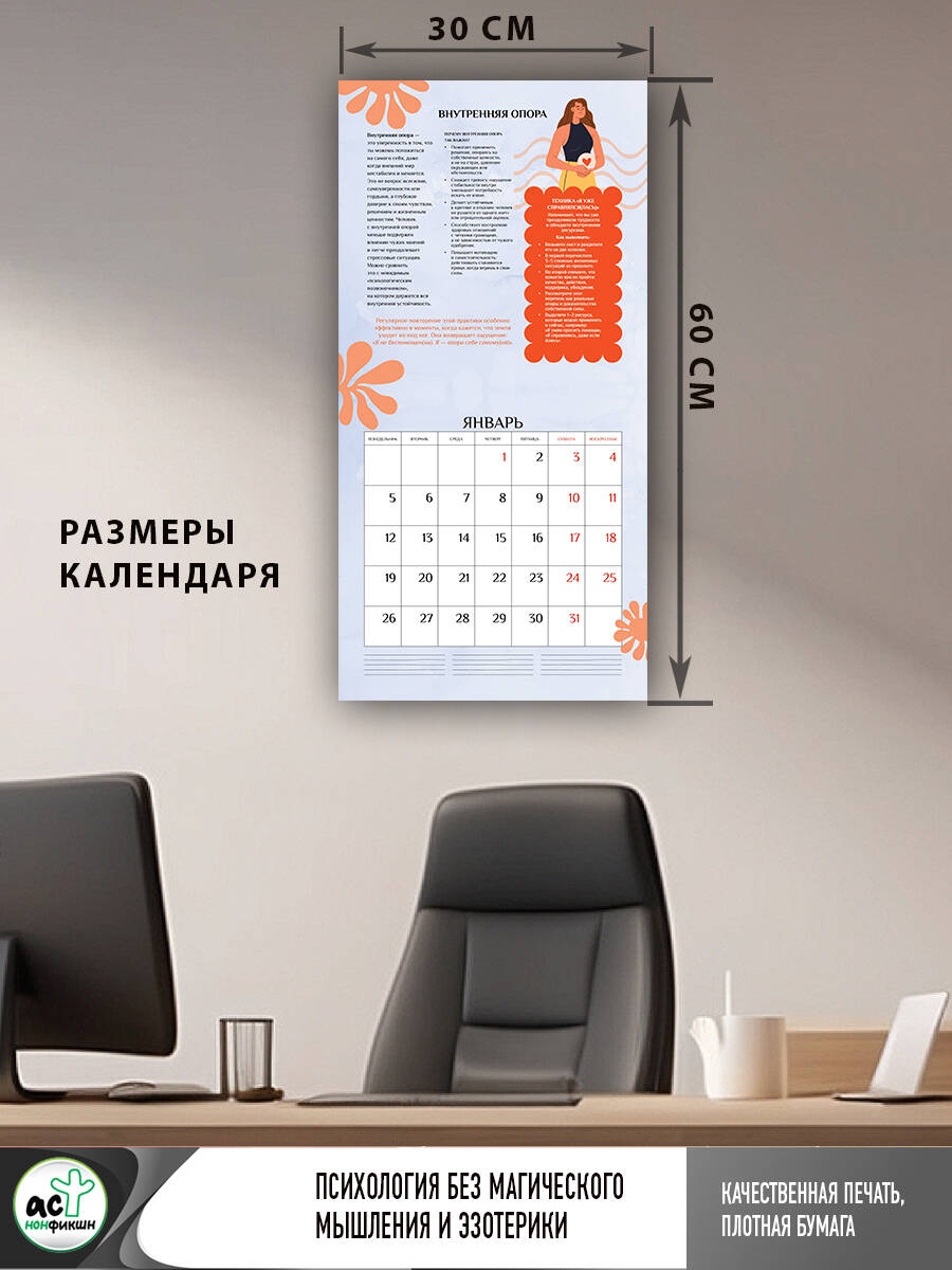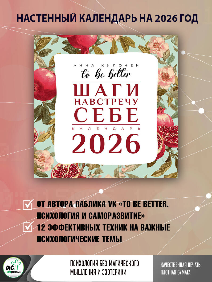 Этот календарь о том, как стать ближе к себе. В каждом месяце дана полезная информация и эффективная техника по одной из 12 важных психологических тем. Пусть каждая страница станет местом, где вы можете остановиться, почувствовать, вспомнить, что вы - не пустота, которую нужно заполнить, а уже достаточны, чтобы начать с собой дружить.| Издательство | Издательство "АСТ" |