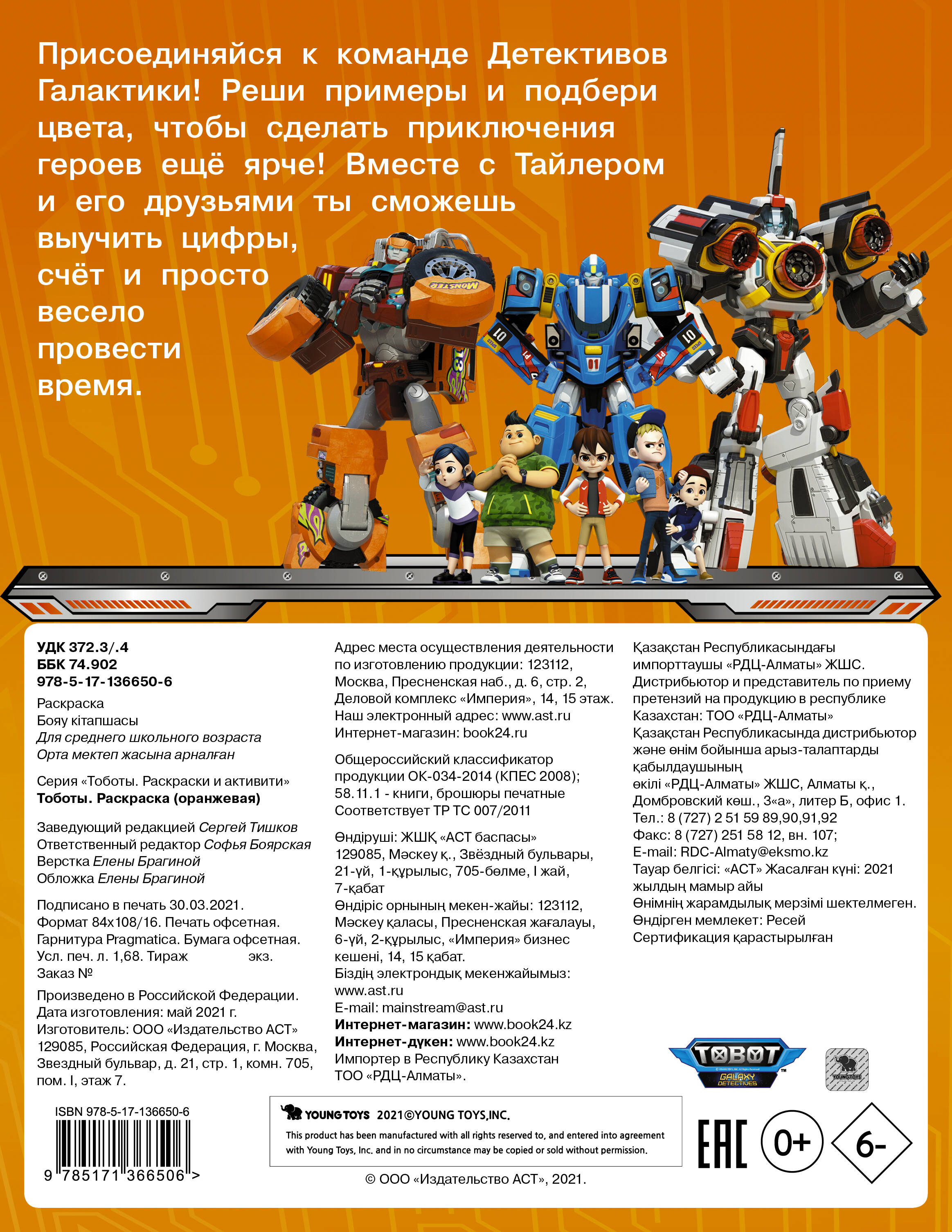 Присоединяйся к команде Детективов Галактики! Реши примеры и подбери цвета, чтобы сделать приключения героев ещё ярче! Вместе с Тайлером и его друзьями ты сможешь выучить цифры, счёт и просто весело провести время.| Издательство | Издательство "АСТ" |