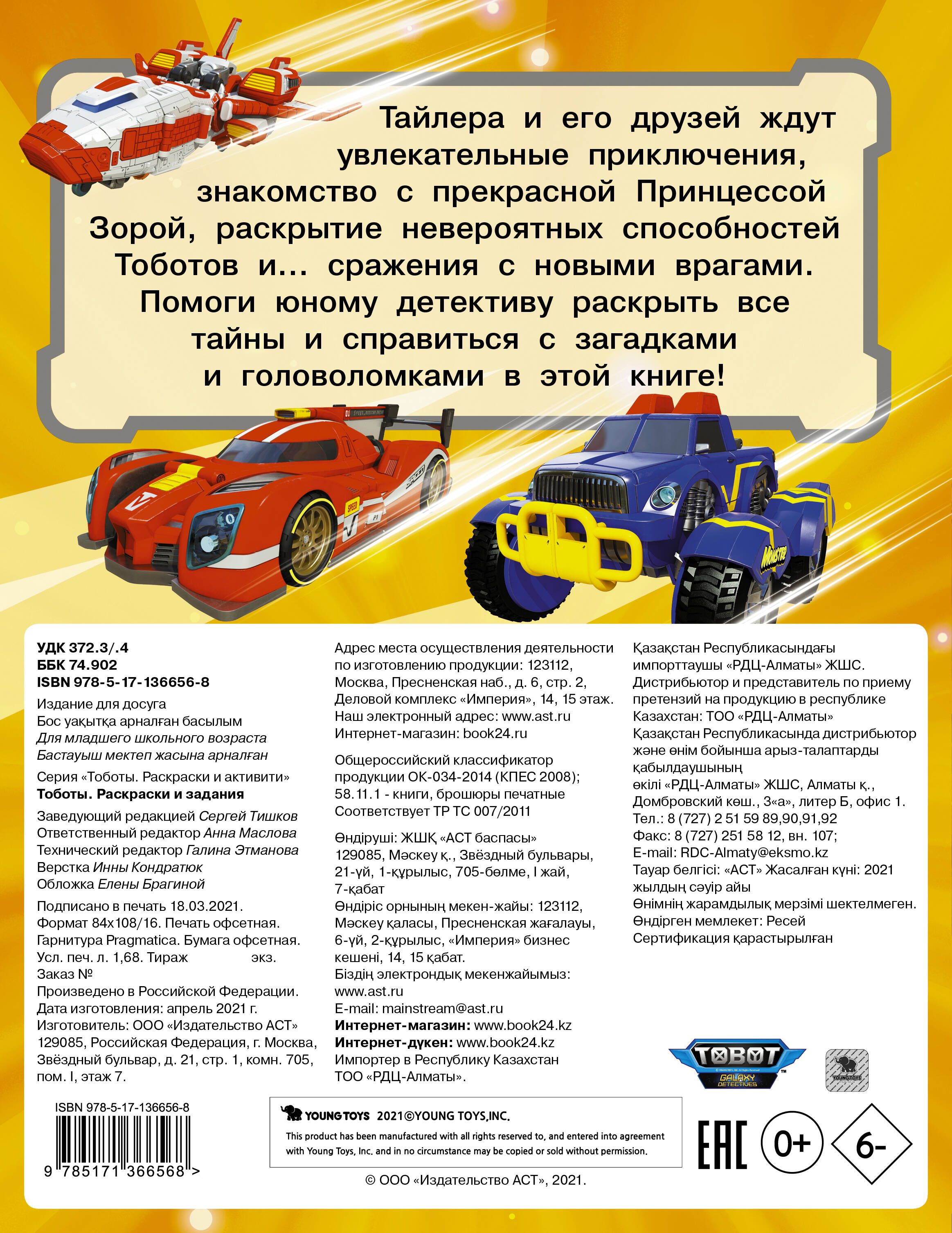 Тайлера и его друзей ждут увлекательные приключения, знакомство с прекрасной Принцессой Зорой, раскрытие невероятных способностей Тоботов и... сражения с новыми врагами. Помоги юному детективу раскрыть все тайны и справиться с загадками и головоломками в этой книге!| Издательство | ИЗДАТЕЛЬСТВО "АСТ" |