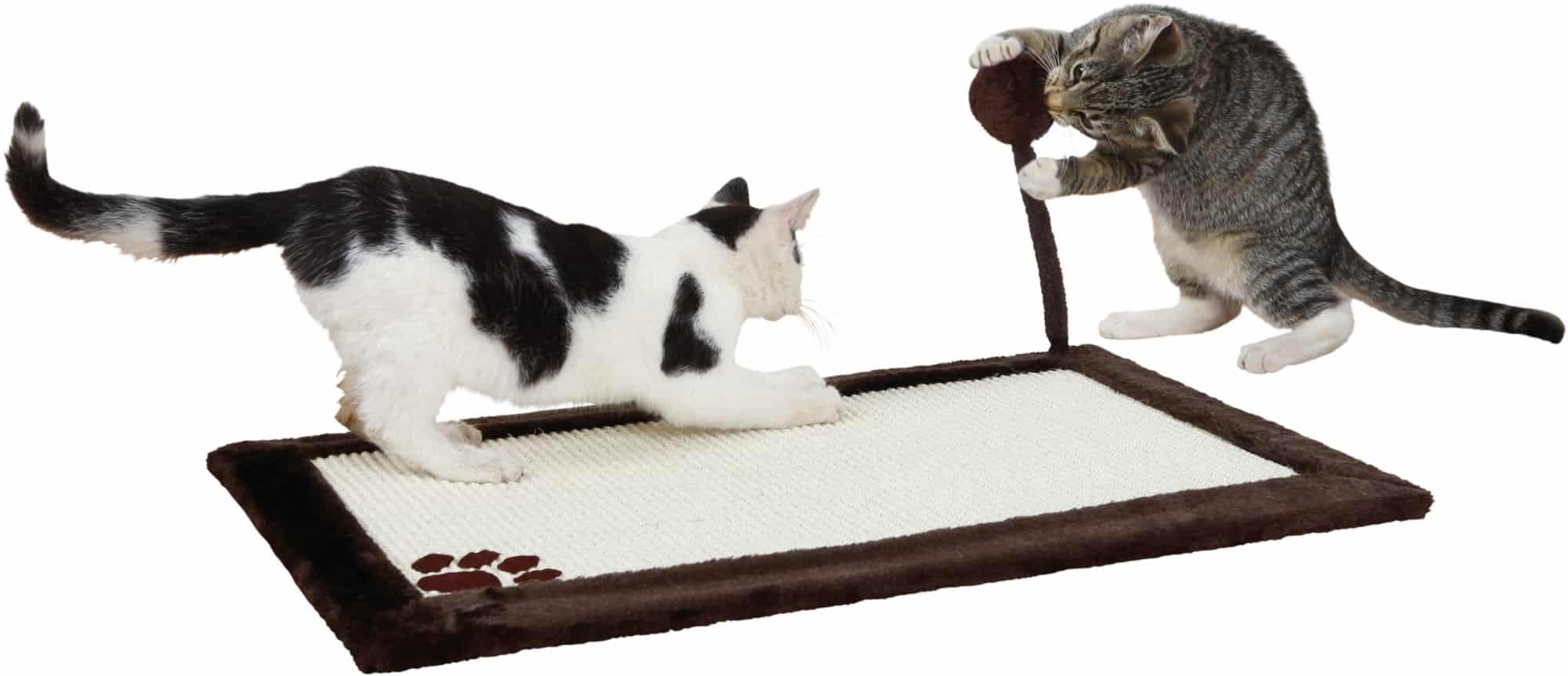 Точилка для когтей - Trixie Коврик для царапания с плюшевой каймой, 70 × 45 см, темно-коричневый Коврик для точения когтей для кошек, которые любят горизонтальные точилки для когтей. С плюшевой каймой и игрушкой