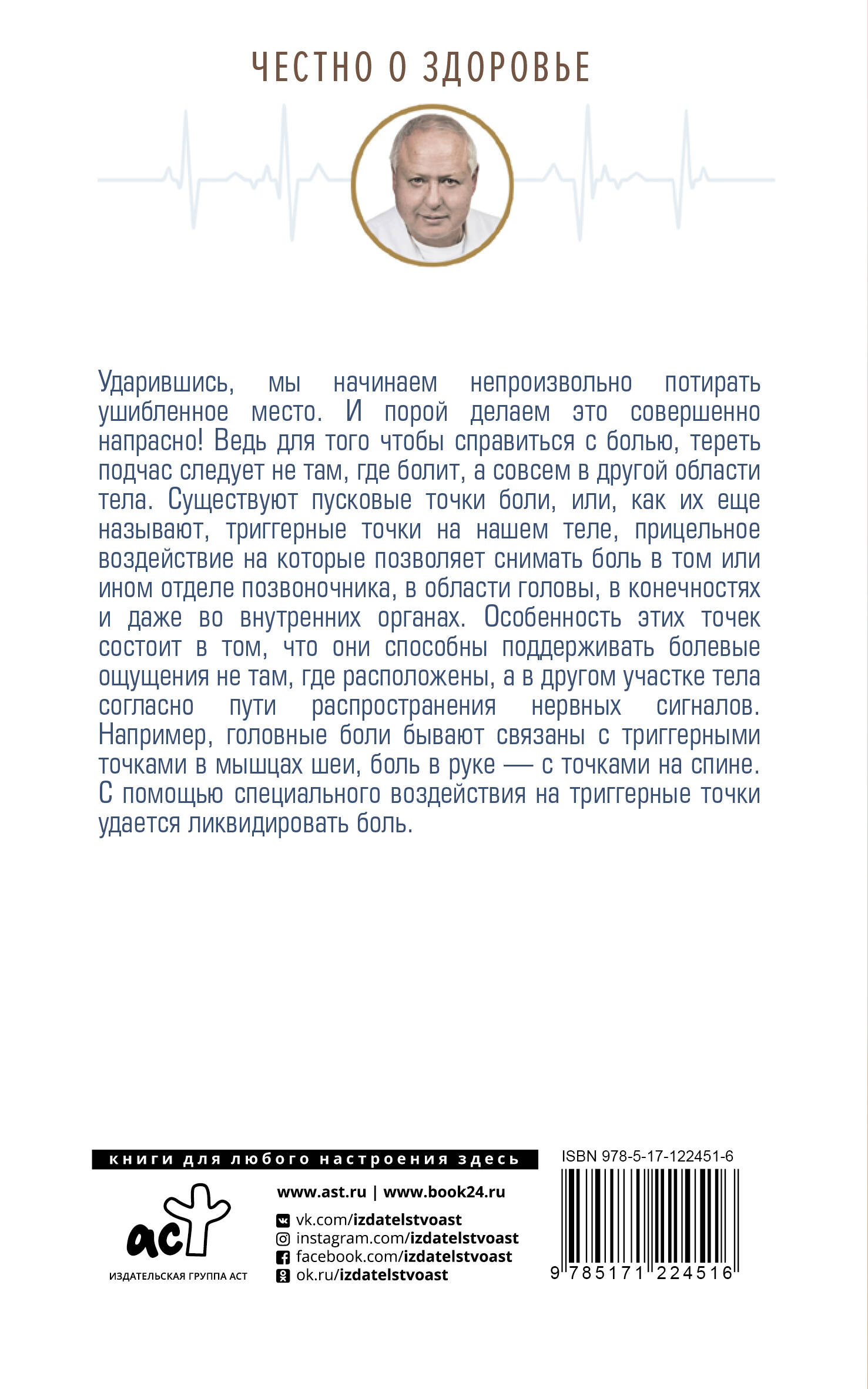 Анатолий Ситель - главный врач Федерального центра мануальной терапии, профессор, доктор медицинских наук, заслуженный врач Российской Федерации - разработал комплекс специальных лечебных поз-движений, с помощью которых можно самостоятельно, без операций и лекарств навсегда избавиться от болей в голове, в разных отделах позвоночника и суставах, восстановив их гибкость и подвижность за короткий срок. - Специальное воздействие на триггерные точки поможет вам без врачей ликвидировать любую боль| Издательство | Издательство "АСТ" |