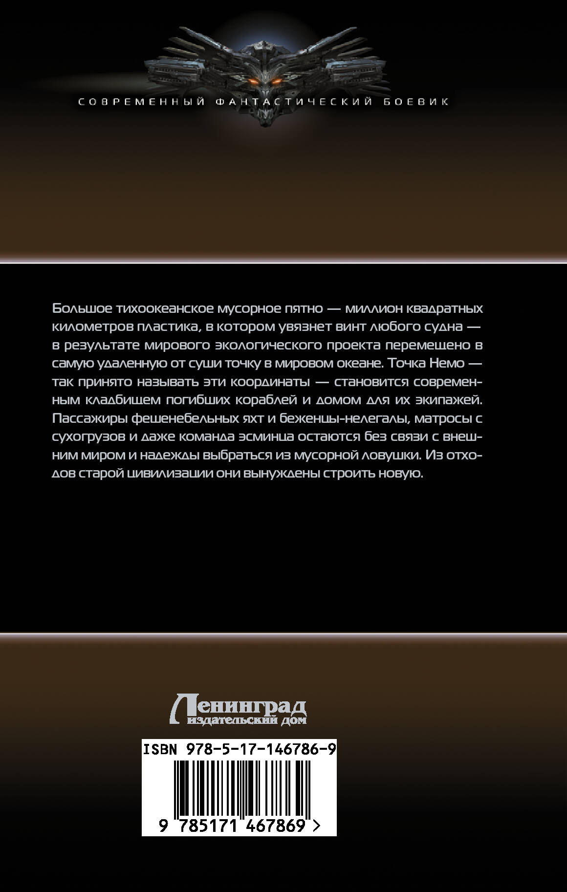 Большое тихоокеанское мусорное пятно - миллион квадратных километров пластика, в котором увязнет винт любого судна - в результате мирового экологического проекта перемещено в самую удаленную от суши точку в мировом океане. Точка Немо - так принято называть эти координаты - становится современным кладбищем погибших кораблей и домом для их экипажей. Пассажиры фешенебельных яхт и беженцы-нелегалы, матросы с сухогрузов и даже команда эсминца остаются без связи с внешним миром и надежды выбраться из мусорной ловушки. Из отходов старой цивилизации они вынуждены строить новую.| Издательство | ИЗДАТЕЛЬСТВО "АСТ" |