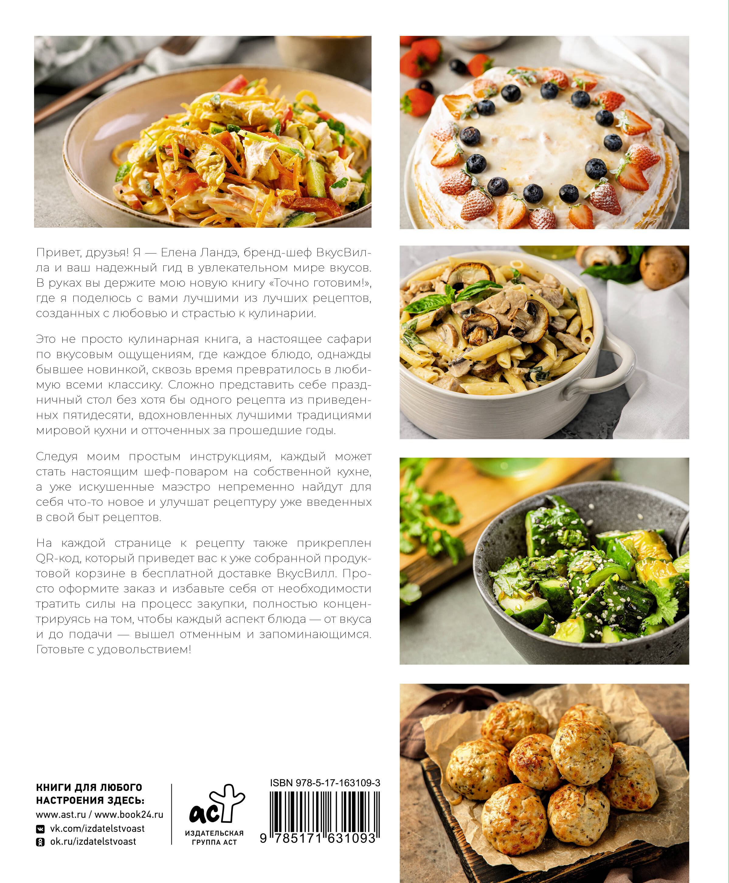 Привет, друзья! Я - Елена Ландэ, бренд-шеф ВкусВилла и ваш надежный гид в увлекательном мире вкусов. В руках вы держите мою новую книгу «Точно готовим!», где я поделюсь с вами лучшими из лучших рецептов, созданными с любовью и страстью к кулинарии. Это не просто кулинарная книга, а настоящее сафари по вкусовым ощущениям, где каждое блюдо, однажды бывшее новинкой, сквозь время превратилось в любимую всеми классику. Сложно представить себе праздничный стол без хотя бы одного рецепта из приведенных пятидесяти, вдохновленных лучшими традициями мировой кухни и отточенных за прошедшие годы. Следуя моим простым инструкциям, каждый может стать настоящим шеф-поваром на собственной кухне, а уже искушенные маэстро непременно найдут для себя что-то новое и улучшат рецептуру уже введенных в свой быт рецептов. На каждой странице к рецепту также прикреплен QR-код, который приведет вас к уже собранной продуктовой корзине в бесплатной доставке ВкусВилл. Просто оформите заказ и избавьте себя от необходимости тратить силы на процесс закупки, полностью концентрируясь на том, чтобы каждый аспект блюда - от вкуса и до подачи - вышел отменным и запоминающимся. Готовьте с удовольствием!| Издательство | Издательство "АСТ" |