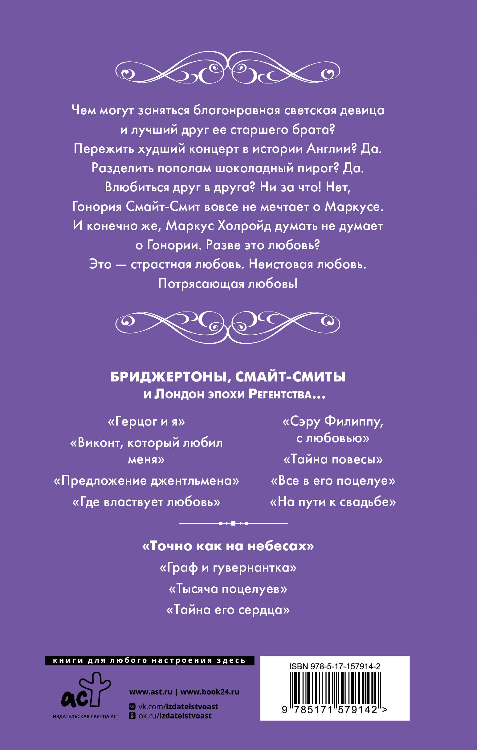 От автора популярного цикла «Бриджертоны». Книги Джулии Куин переведены на 40 языков, их суммарный тираж превышает 10 000 000 экземпляров. Произведения писательницы 19 раз попадали в список бестселлеров по версии газеты The New York Times. Первая книга из популярной серии «Квартет Смайт-Смитов» - это трогательная история любви, возродившейся из крепкой дружбы.| Издательство | Издательство "АСТ" |