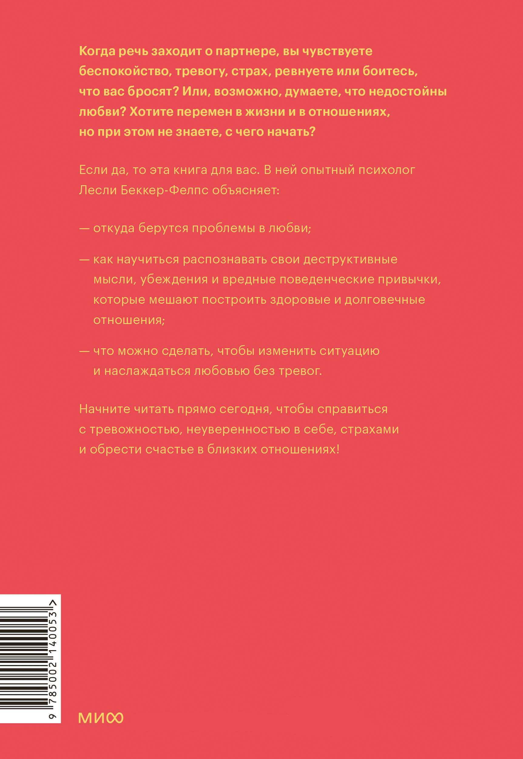Новое издание книги "Нетревожные отношения. Как справиться с ревностью, беспокойством и обрести уверенность в себе и партнере". От семейного психолога с многолетним опытом. Под обложкой - простые инструменты, которые помогут выстроить здоровые и спокойные отношения. Когда речь заходит о партнере, вы чувствуете беспокойство, тревогу, страх, ревнуете или боитесь, что вас бросят? Или, возможно, думаете, что недостойны любви? Если да, то эта книга для вас. В ней опытный психолог Лесли Беккер-Фелпс объясняет: - откуда берутся проблемы в любви; - как научиться распознавать свои деструктивные мысли, убеждения и вредные поведенческие привычки, которые мешают построить здоровые и долговечные отношения; - что можно сделать, чтобы изменить ситуацию и наслаждаться любовью без тревог. Начните читать сегодня, чтобы справиться с тревожностью, неуверенностью в себе, страхами и обрести счастье в близких отношениях! Для кого книга: Для тех, кто хочет перемен в жизни и отношениях, но не знает, с чего начать, или топчется на месте. Для тех, кто испытывает неуверенность в себе и в партнере, ревность и страх расставания.| Издательство | МАНН, ИВАНОВ И ФЕРБЕР ООО |