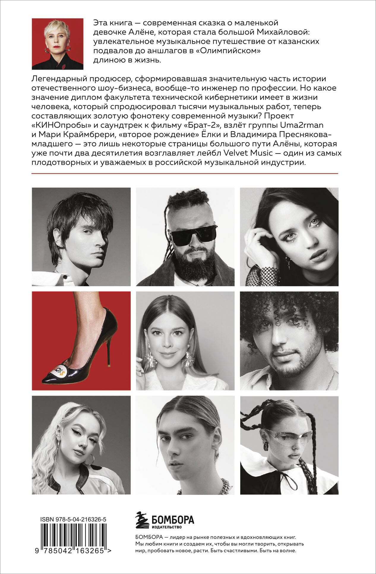 Эта книга посвящена одному из самых успешных продюсеров российского шоу-бизнеса - Алёне Михайловой, казанской девушке, когда-то отказавшейся от карьеры инженера ради непредсказуемой жизни среди отечественных рок- и поп-музыкантов, для многих из которых она постепенно стала «второй мамой». Первые альбомы и стадионные концерты Земфиры (признана иноагентом - Минюст РФ), проект «КИНОпробы» и саундтрек к фильму «Брат-2», восхождение Валерия Меладзе, взлёт группы Uma2rman и Мари Краймбрери, «второе рождение» Ёлки и Владимира Преснякова-младшего - это лишь некоторые страницы большого пути Алёны, которая уже почти два десятилетия возглавляет собственный лейбл Velvet Music - один из самых плодотворных и уважаемых в российской музыкальной индустрии. Из книги вы узнаете: - как устроена работа лейблов и особенности взаимодействия продюсера и музыкантов; - как стали популярными «Винтаж», Ёлка, Uma2rman и другие звезды российского шоу-биза; - как продюсеры отбирают потенциальные хиты и продумывают сценические образы звёзд и многое другое, обычно скрытое от слушателей. Алёна Михайлова продюсировала сотни дисков, теперь составляющих «золотую фонотеку» нашей современной музыки. Книга иллюстрирована фотографиями из личных архивов Алёны, а текст написал известный музыкальный журналист и писатель Михаил Марголис.| Издательство | ООО "Издательство "Эксмо" |