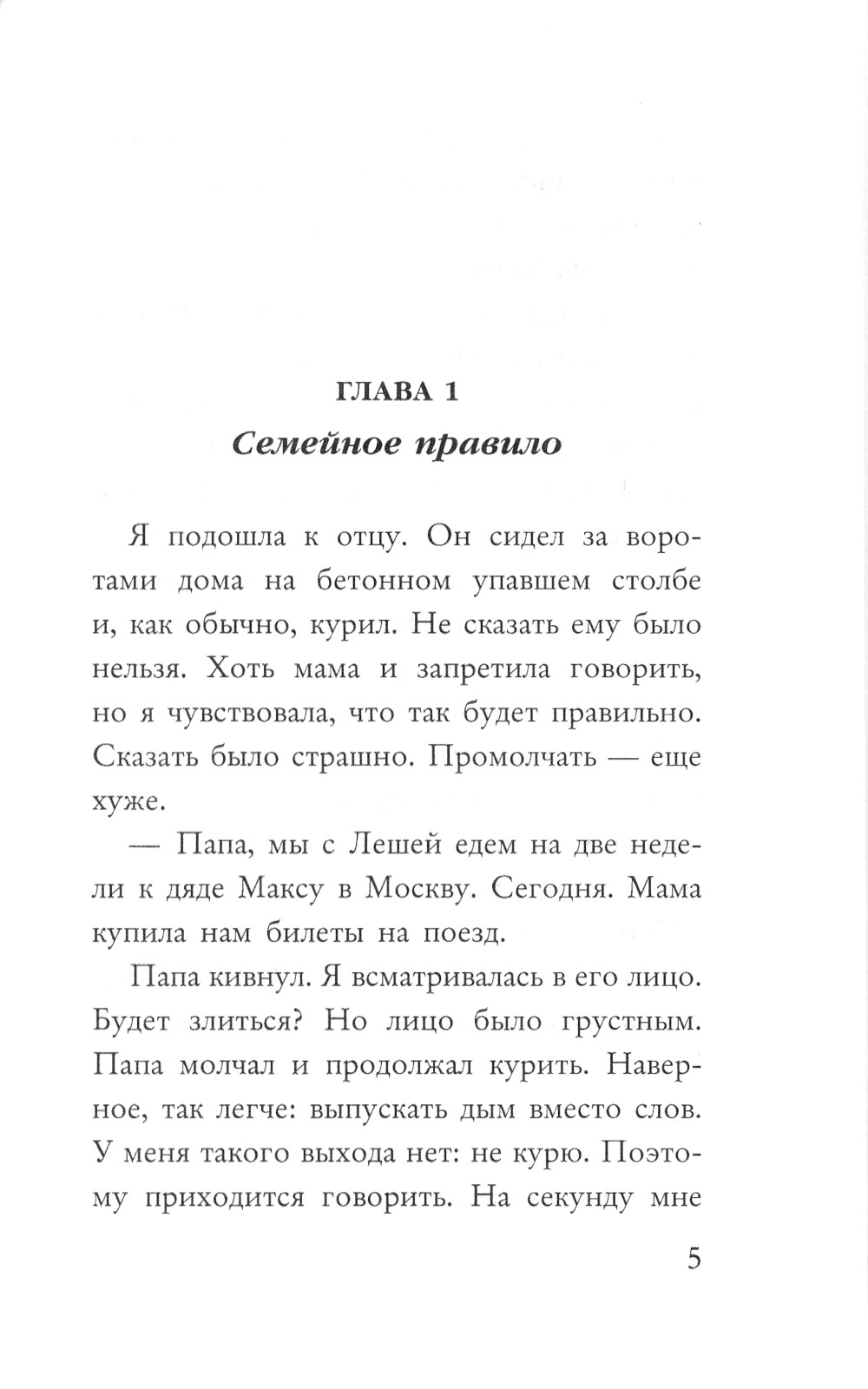 Ксюша и ее старший брат едут на летние каникулы в Москву, погостить к родственникам. За это время родители принимают неожиданное для детей решение - развестись. Так путешествие для Ксюши превращается в полноценный переезд. Она теряет связь с родным домом, отцом, школой, подругами. Как принять вынужденные изменения? Получится ли впустить в сердце новый город? И кто возьмет на себя смелость прервать привычное молчание и первым заговорить о семейных проблемах: Ксюша или родители?| Издательство | Черная речка |