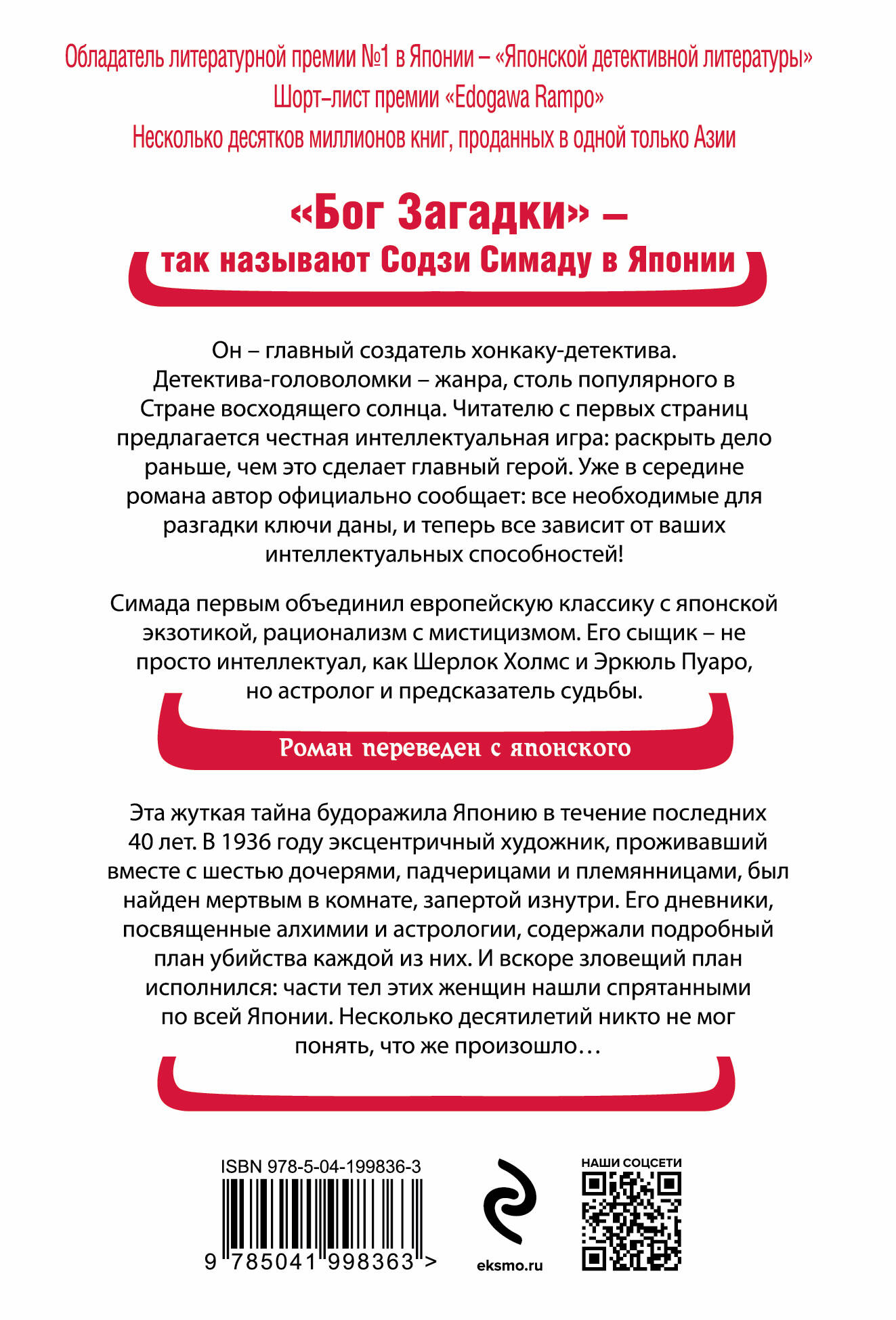 «Бог Загадки» - так называют Симаду Содзи в Японии. Это он создал хонкаку-детектив - новый жанр, столь популярный в Стране Восходящего Солнца. Детектив, в котором читателю предложена честная интеллектуальная игра: раскрыть дело раньше, чем это сделает главный герой. Содзи первым объединил европейскую классику с японской экзотикой, рационализм с мистицизмом. Его великий сыщик - не просто человек острого ума и блестящих аналитических способностей, как Шерлок Холмс, Эркюль Пуаро и Ниро Вульф, но и астролог и предсказатель судьбы. Роман Содзи относится к категории «must read» для каждого уважающего себя японофила - он буквально пропитан интересной информацией об истории, культуре и географии Японии предвоенного периода. ПЕРЕВОД С ЯПОНСКОГО ЯЗЫКА. «Насколько мне известно, это самое странное из когда-либо совершавшихся преступлений. Абсолютно невозможное; ничего подобного, наверное, никогда не случалось не только в Японии, но и во всем мире. Оно было задокументировано со всей тщательностью - остались все записи и протоколы, под рукой, казалось бы, все ключи. Но загадка все равно самым необъяснимым образом не поддавалась. Перед тем как дать на нее ответ, данная книга предоставляет читателям возможность самим додуматься до решения, имея все необходимые для этого сведения». - Кадзуми Исиока, друг и соратник Киёси Митараи - предсказателя судьбы, астролога и великого детектива «Великий Содзи Симада буквально изобрел целый поджанр "логической загадки"». - The Guardian «Хитроумнейше и захватывающе экзотично». - Japan Times «Одно из самых оригинальных решений загадки, которые я когда-либо встречал». - Энтони Горовиц| Издательство | ООО "Издательство "Эксмо" |