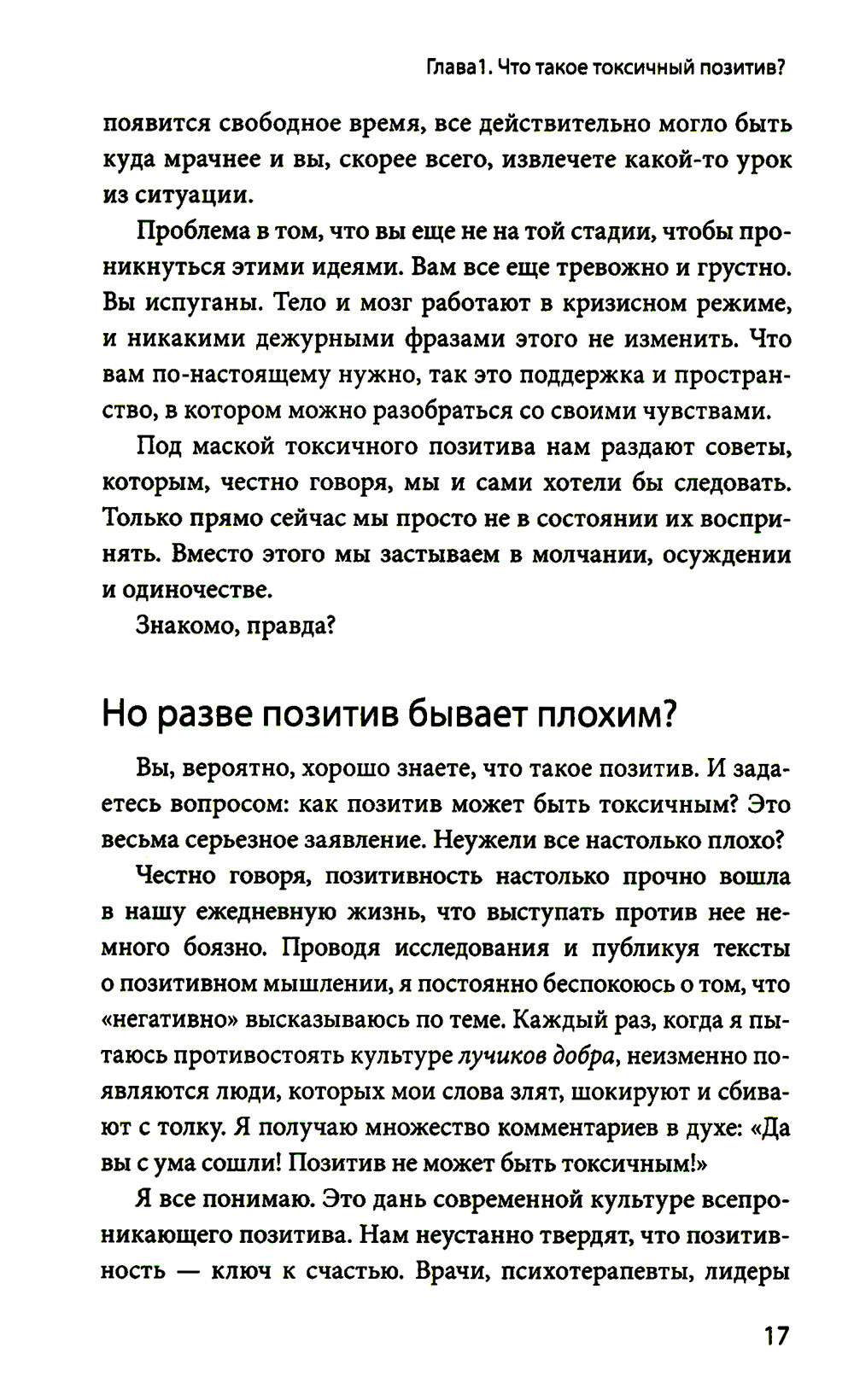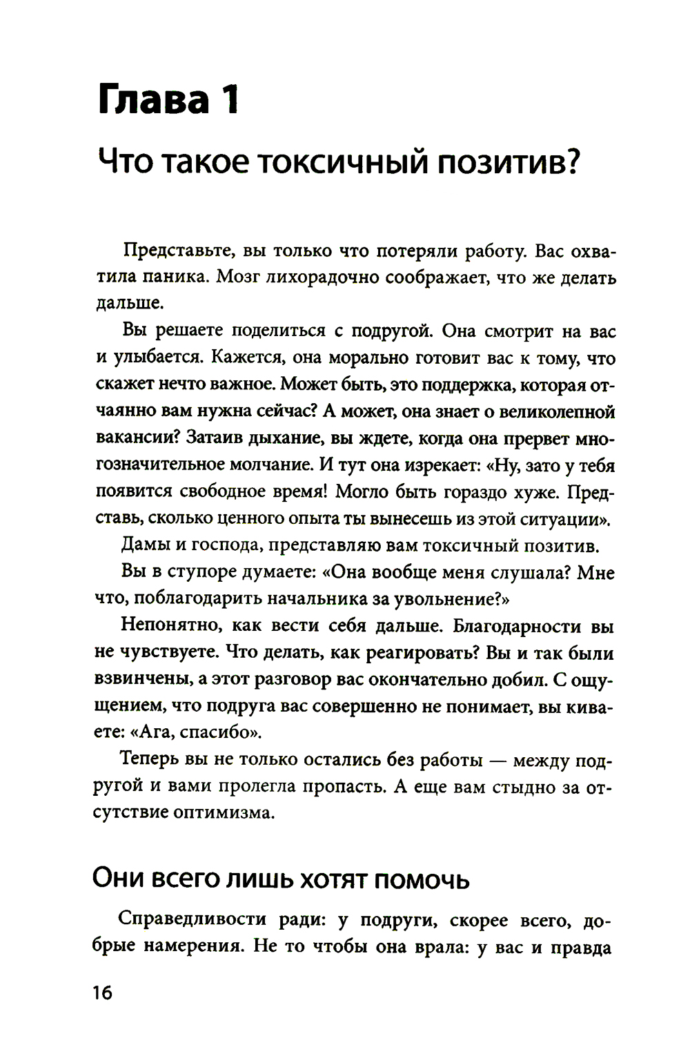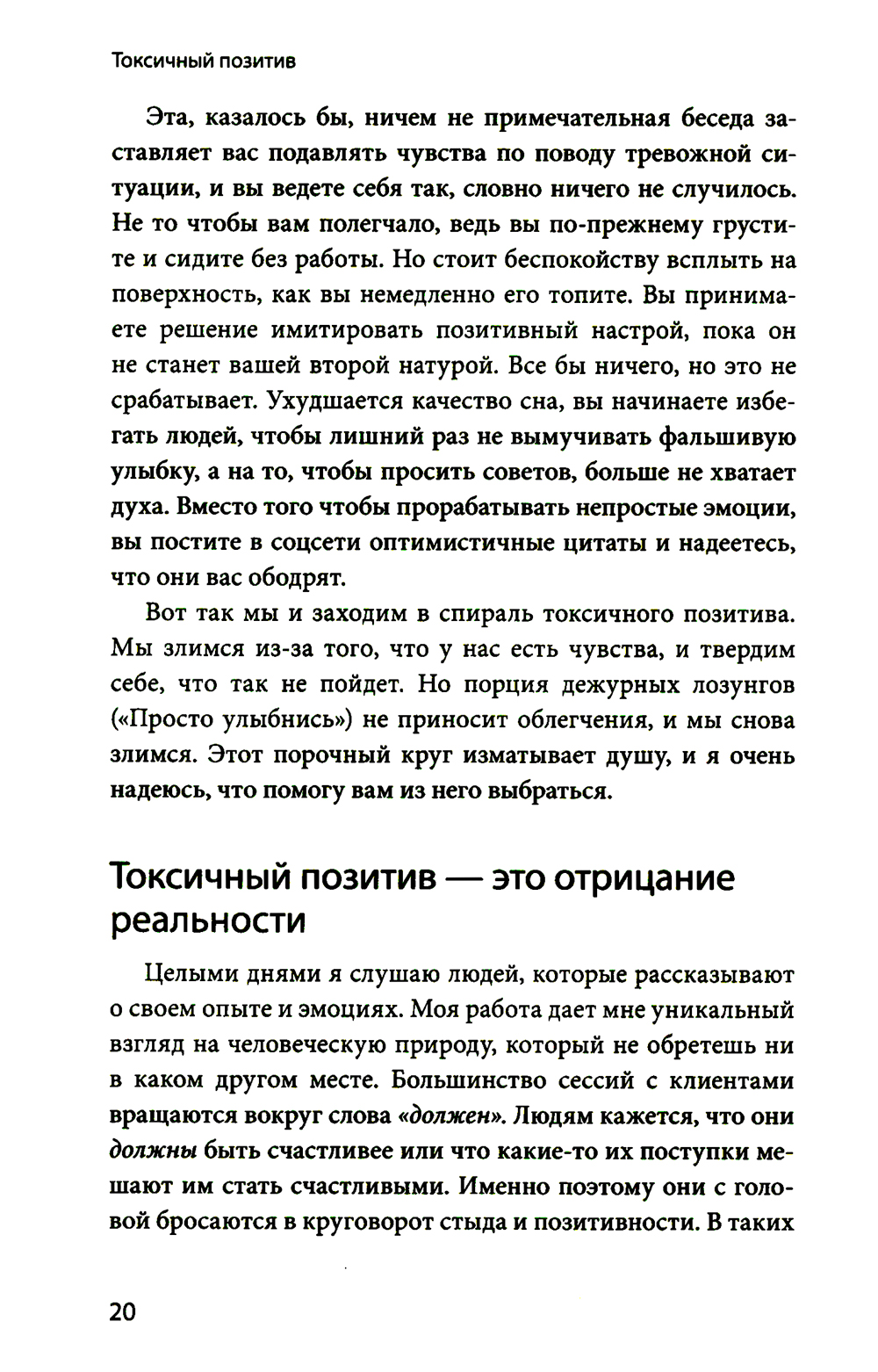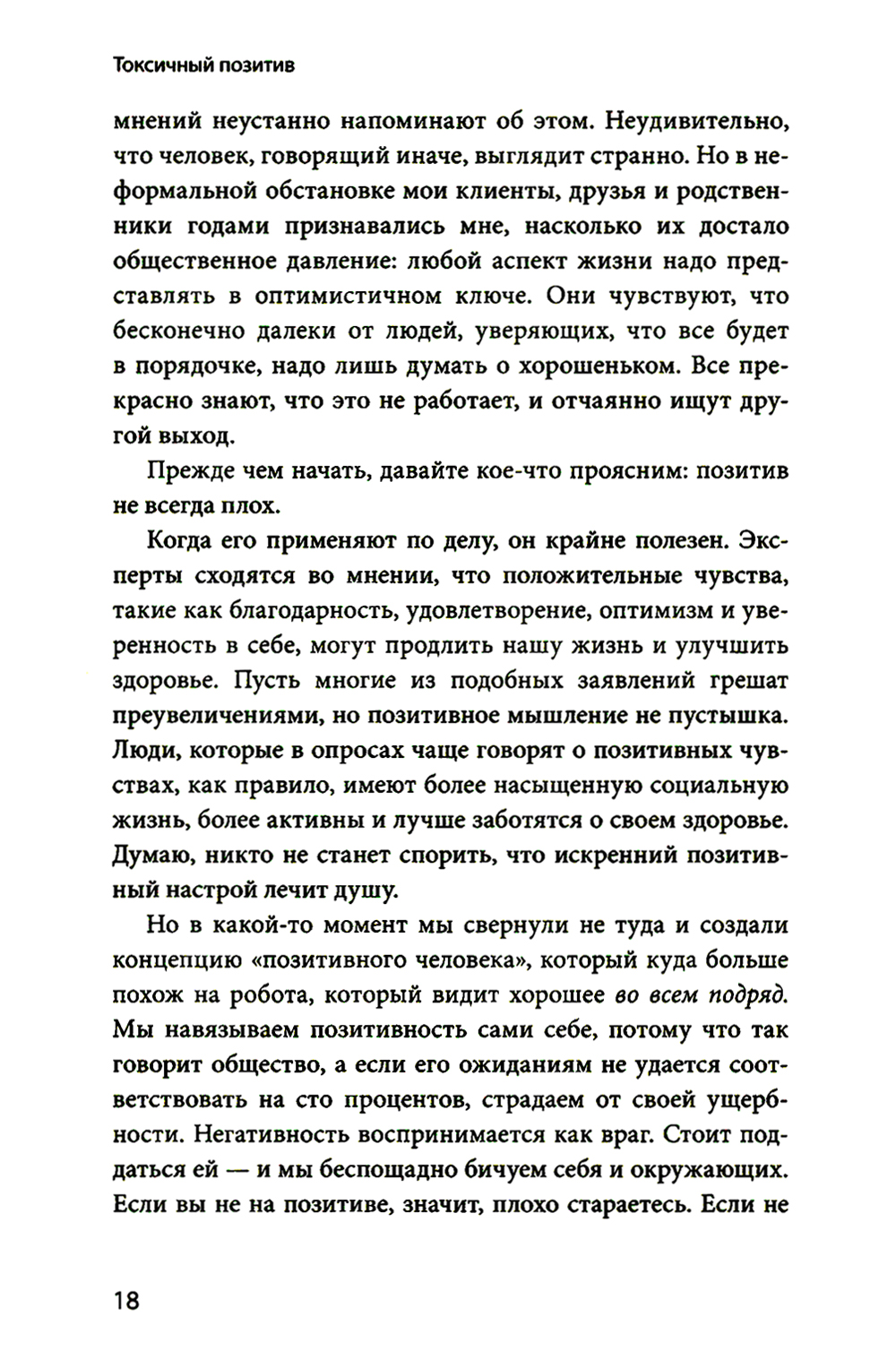 Мы регулярно слышим о том, что в любой ситуации необходимо искать светлую сторону и не обращать внимания на плохое. Из-за этого, сталкиваясь с трудностями, мы подавляем свои настоящие эмоции и не признаемся себе в истинных чувствах. Это стремление искоренить из жизни любые негативные проявления психолог Уитни Гудман называет токсичным позитивом. На примере из разных сфер жизни (здравоохранение, корпоративная среда, повседневное общение) она показывает, почему необходимо принимать свои чувства, делится стратегиями, которые позволят это сделать, а также дает советы о том, как корректно оказывать поддержку окружающим, подбирая слова, которые действительно помогут.| Издательство | Манн, Иванов и Фербер |