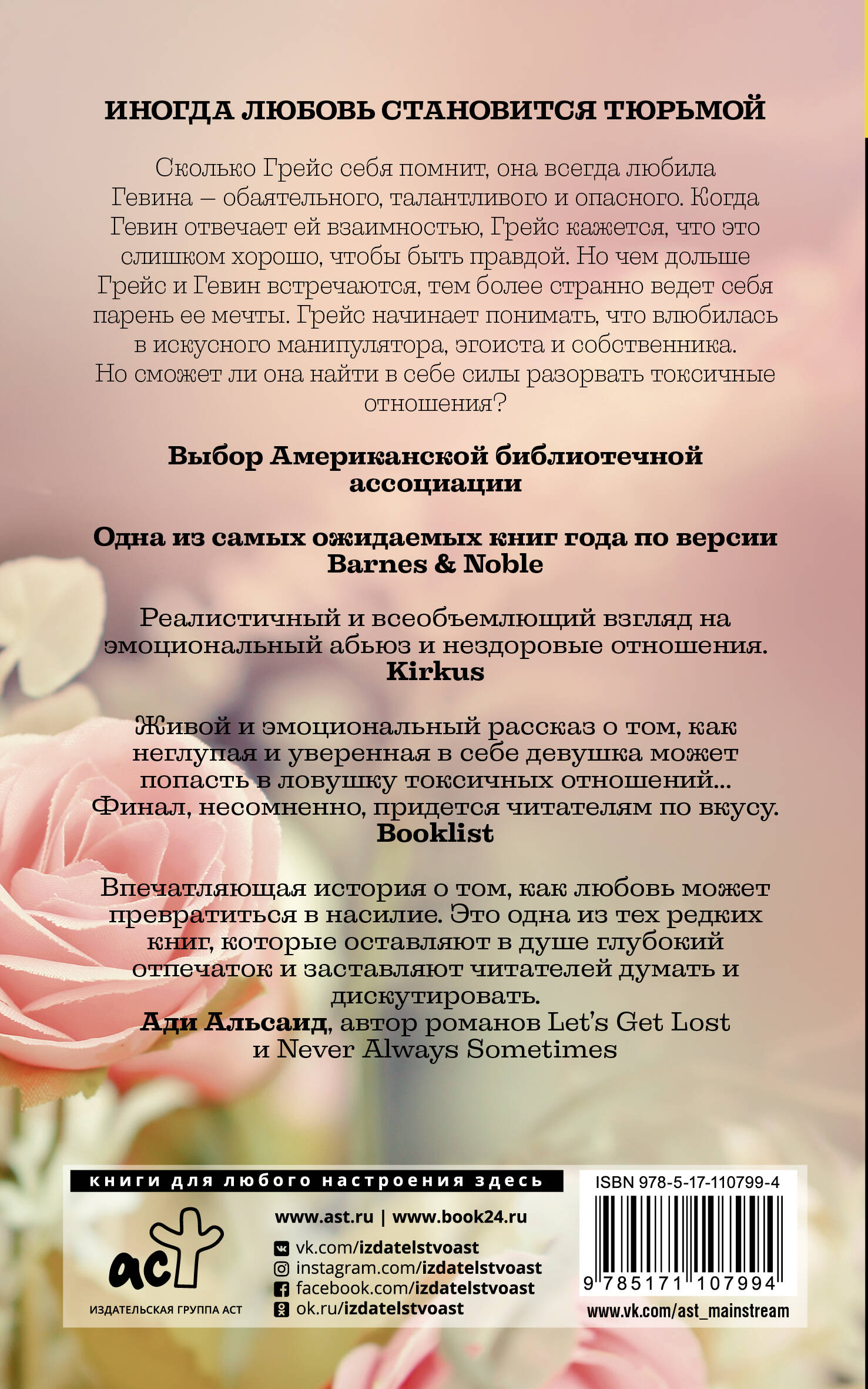 Сколько Грейс себя помнит, она всегда любила Гевина - обаятельного, талантливого и опасного. Когда Гевин отвечает ей взаимностью, Грейс кажется, что это слишком хорошо, чтобы быть правдой. Но чем дольше Грейс и Гевин встречаются, тем более странно ведет себя парень ее мечты. Грейс начинает понимать, что влюбилась в искусного манипулятора, эгоиста и собственника. Но сможет ли она найти в себе силы разорвать токсичные отношения?| Издательство | ИЗДАТЕЛЬСТВО "АСТ" |