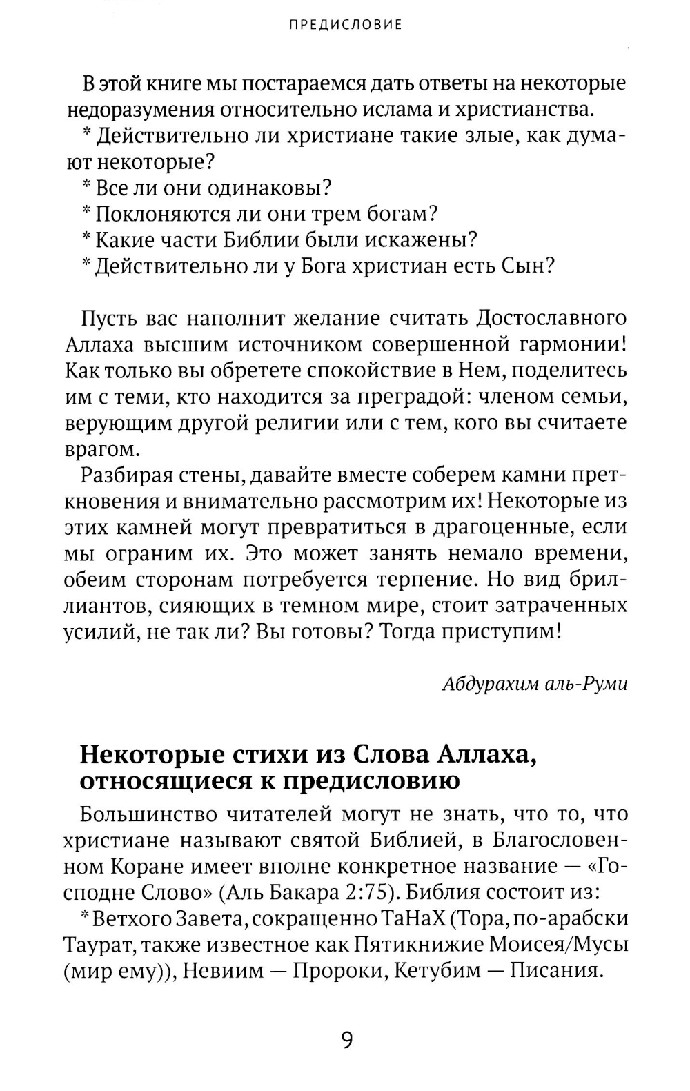 По замыслу автора эта книга является скромным вкладом, чтобы привести верующих к точкам соприкосновения. С ее помощью предпринята попытка дать духовным потомкам Авраама (Ибрахима) (мир ему) ряд подсказок, помогающих прийти к общему мнению по ряду вопросов межконфессиональных отношений. Сопоставляя библейские и коранические тексты, автор ищет ответы на поставленные вопросы.| Издательство | Источник жизни |