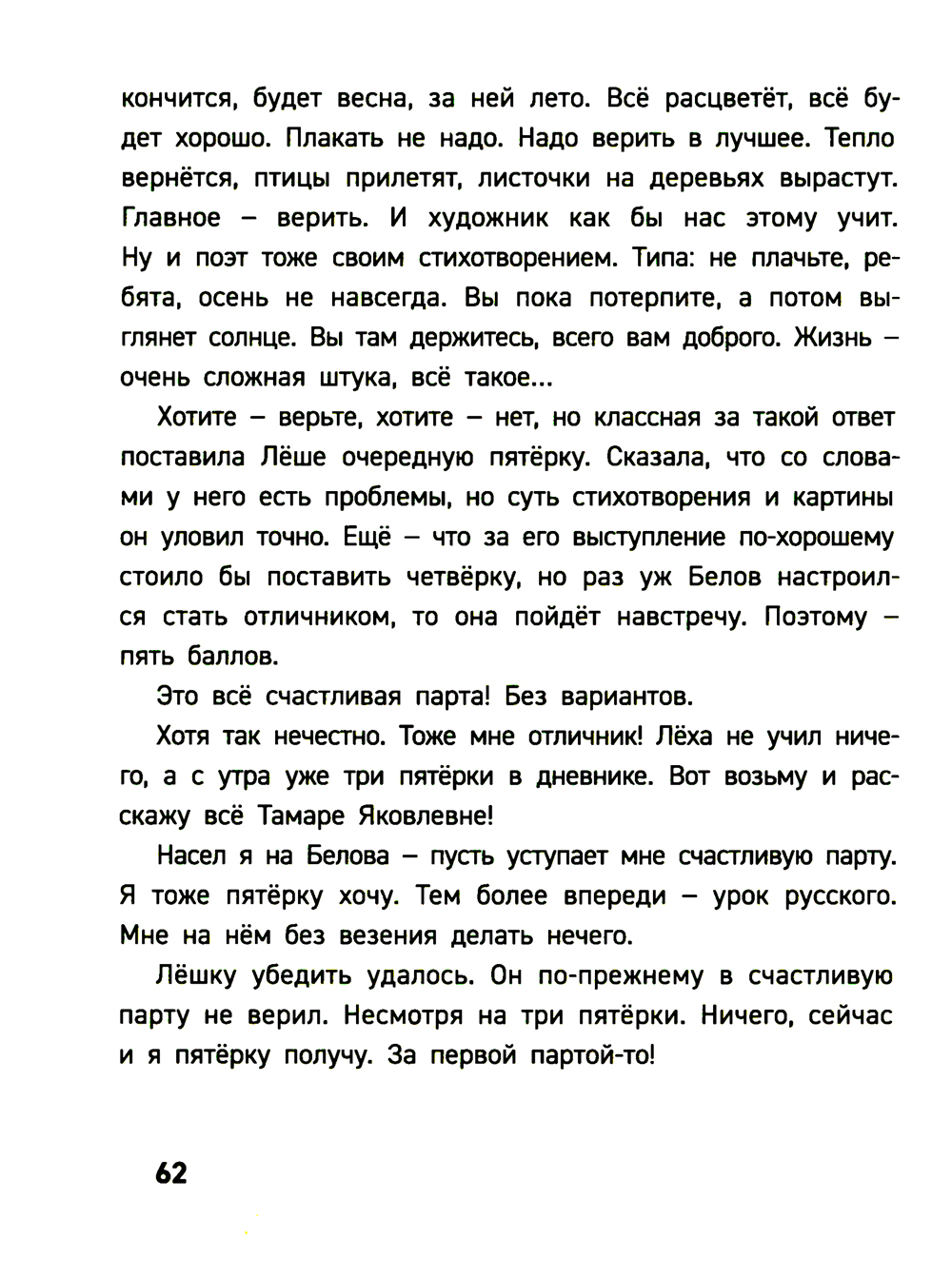Эта книга - цикл весёлых и озорных рассказов о приключениях Миши Новикова, ученика начальных классов. Что ни день, то целая история о том, как мальчик и его друзья даже в самых непредсказуемых ситуациях сохраняют позитивный настрой и задор. Улей на день рождения от родителей, очередная двойка, ссора с одноклассником, не сделанное домашнее задание (а вы читали «Приключения Марка Твена»?) и неожиданные гости... Миша обязательно найдёт выход из любого положения! Но, как назло, не всегда всё идет по плану, и герою приходится то и дело вздыхать: «Только этого мне не хватало!» Станислав Секретов - детский писатель, журналист, литературный критик и книжный обозреватель. В этом цикле рассказов автору удалось достоверно изобразить будни ребёнка - в самом деле, что-то похожее с нами тоже когда-то случалось. Миша и другие герои, решая порой нелегкие задачки школьной жизни, учатся дружить, быть честными и доверять друг другу. Книгу сопровождают весёлые карикатурные иллюстрации Дины Усманди.| Издательство | Пять четвертей |