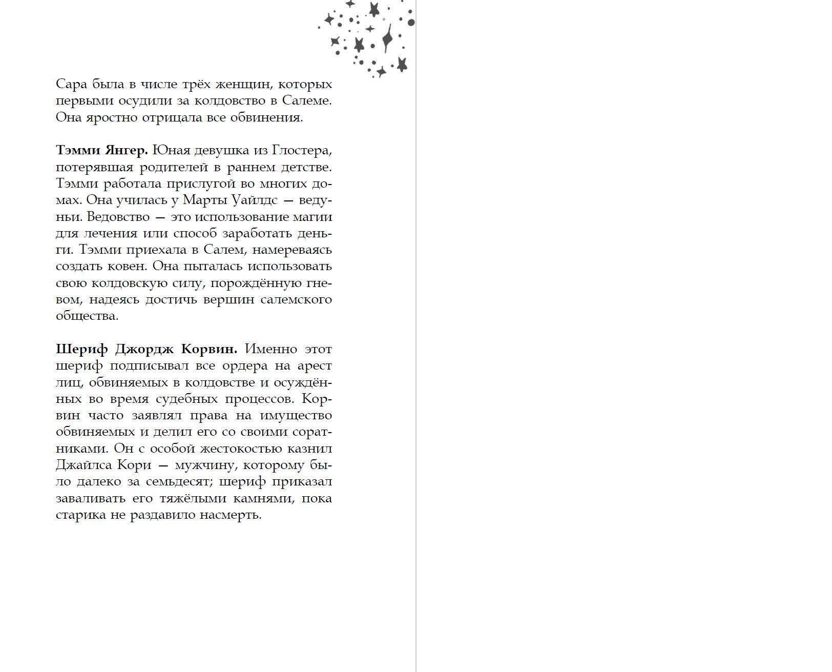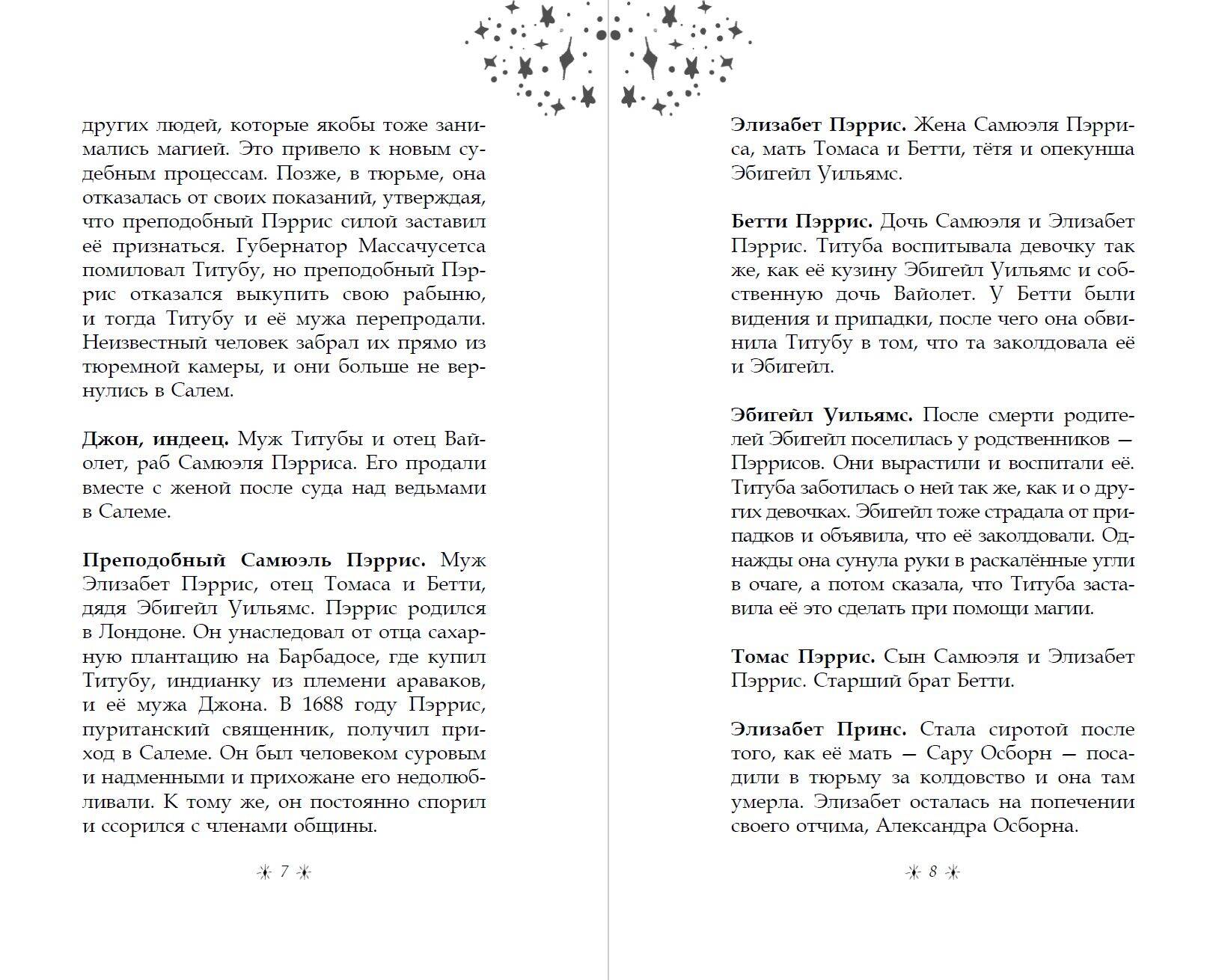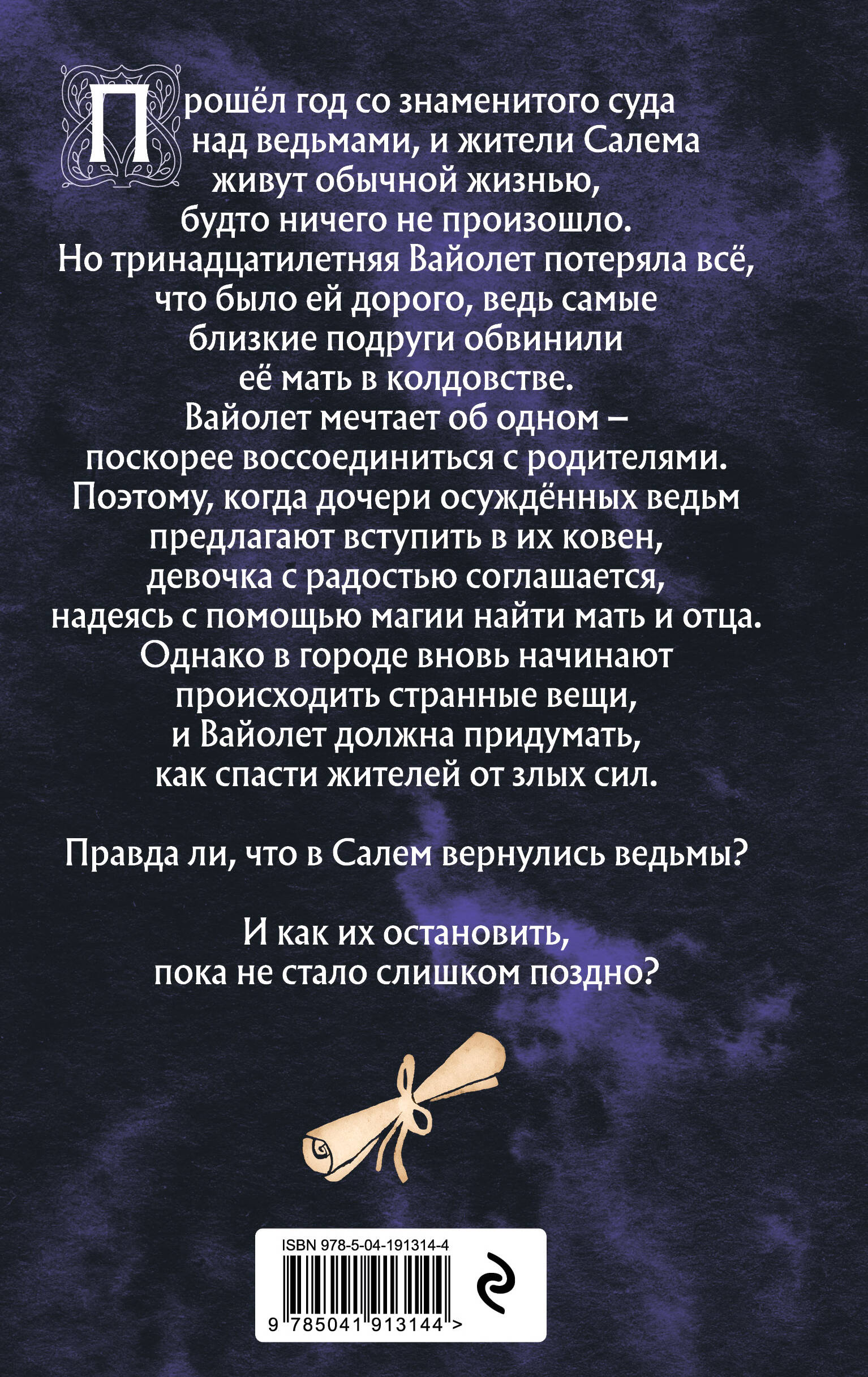 В знаменитом Салеме тринадцатилетняя Вайолет, которая работает служанкой в доме преподобного, мечтает однажды воссоединиться с родителями, которых продали в другой штат. Когда новые подруги предлагают девочке вступить в ковен, чтобы научиться колдовать, она без раздумий соглашается. Но вскоре в городе происходит череда необъяснимых событий, и Вайолет начинает подозревать, что огромная сила могла попасть не в те руки, а опасность была ближе, чем она думала. Новая мистическая история для фанатов мультфильмов «Коралина» и «Паранорман»!| Издательство | ООО "Издательство "Эксмо" |