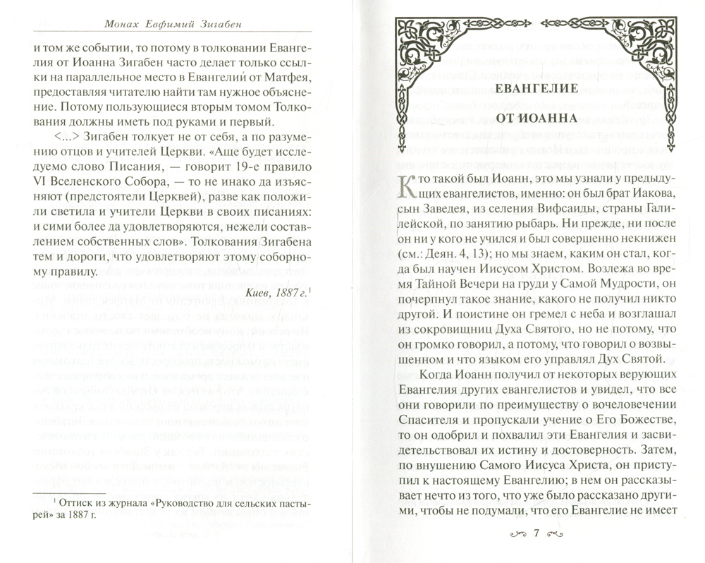 Предлагаемая книга содержит «Толкование Евангелия от Иоанна» известного прежде всего своими библейскими толкованиями, но малоизвестного подробностями своей жизни византийского православного богослова и экзегета XI-XII веков монаха Евфимия Зигабена (ок. 1050-1112). Четвертое Евангелие, традиционно отличаемое от трех предыдущих, синоптических (повествующих больше о событиях земной жизни Спасителя по Его человечеству), как «тайнозрительное» и излагающее по вдохновению свыше таинственное учение о Христе как Предвечном Сыне Божием и тайнах Будущего века, всегда налагало на толкователя особую духовную ответственность. В своем ставшем классическим «Толковании Евангелия от Иоанна» Евфимий Зигабен, следуя православной традиции, опирается и на предшествующих толкователей: святителей Иоанна Златоуста, Григория Богослова, Кирилла Александрийского и прп. Маскима Исповедника. В то же время стиль и язык «Толкования Евангелия от Иоанна» характеризуется достаточной простотой и доступностью в изложении столь высоких истин, и потому сочинение можно признать предназначенным для самого широкого круга читателей.| Издательство | Сибирская Благозвонница |