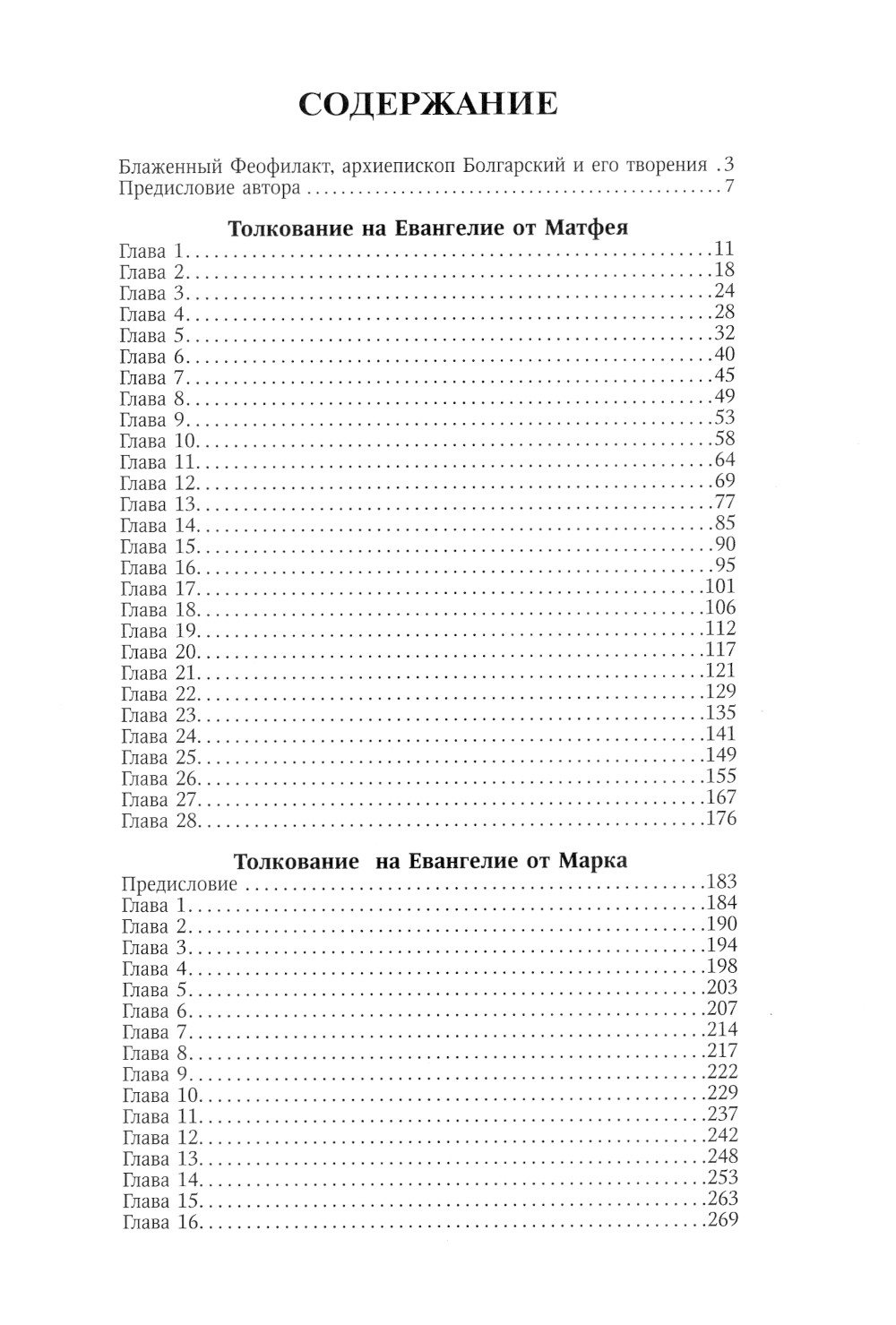 Блаженный Феофилакт Болгарский является одним из самых уважаемых учителей Церкви. Творения его всегда почитались церковными писателями наравне с творениями прочих святых отцов и учителей Церкви. Толкование на Святое Евангелие блаженного Феофилакта является самым обширным и ценным его трудом. Будучи прекрасно знаком со святоотеческими творениями, он умело собрал из них и объединил все то, что было наилучшим и наиболее существенным для понимания и истолкования Священного Писания. Это качество составляет главное достоинство его толкований, и потому они значительно облегчают труд для всякого, кто хотел бы изучать новозаветные Писания по творениям святых отцов, кто хотел бы проникнуться истинно-святоотеческим духом понимания Нового Завета или познакомиться со святоотеческим отношением к нему.| Издательство | Благовест** |