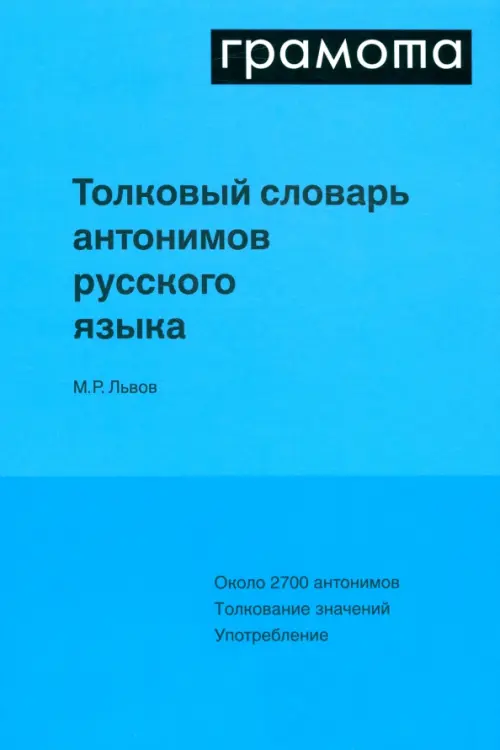 Толковый словарь антонимов русского языка - один из главных трудов М.Р. Львова, известного специалиста в области методики преподавания русского языка, профессора, члена-корреспондента РАО. Словарь содержит около 2700 антонимов. В нем впервые даются общие понятия, объединяющие антонимические пары, и особенности лексического значения каждого антонима. В словаре представлены примеры употребления антонимов в речи: словарные статьи содержат иллюстрации из художественной и публицистической литературы XIX-XX веков. В приложениях приводятся нестандартные способы образования антонимов, а также антонимия морфем. Быстро найти нужную антонимическую пару можно с помощью алфавитного указателя. Словарь предназначен для самого широкого круга читателей, в том числе специалистов-филологов, переводчиков, сотрудников СМИ, методистов, школьных учителей и преподавателей вузов.