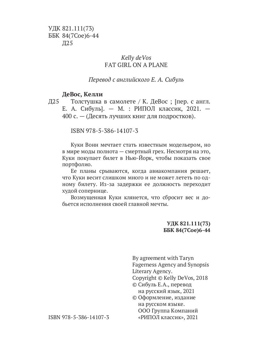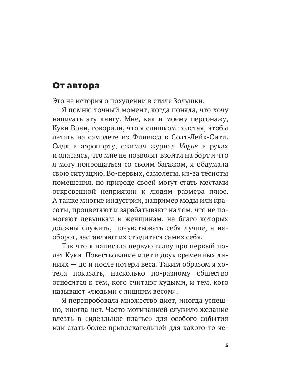 Куки Вонн мечтает стать известным модельером, но в мире моды полнота - смертный грех. Несмотря на это, Куки покупает билет в Нью-Йорк, чтобы показать свое портфолио. Ее планы срываются, когда авиакомпания решает, что Куки весит слишком много и не может лететь по одному билету. Из-за задержки ее должность переходит худой сопернице. Возмущенная Куки клянется, что сбросит вес и добьется исполнения своей главной мечты.| Издательство | Рипол Классик |