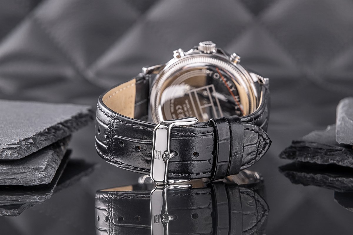• Ремешок: чёрная кожа с тиснением под крокодила