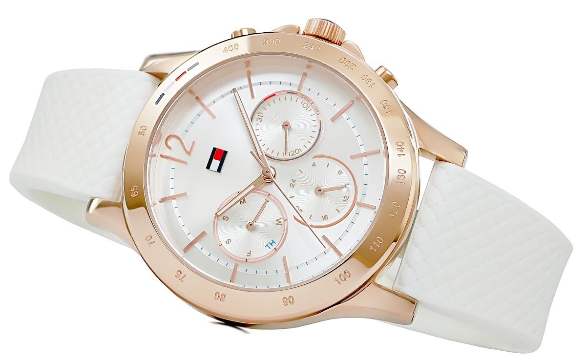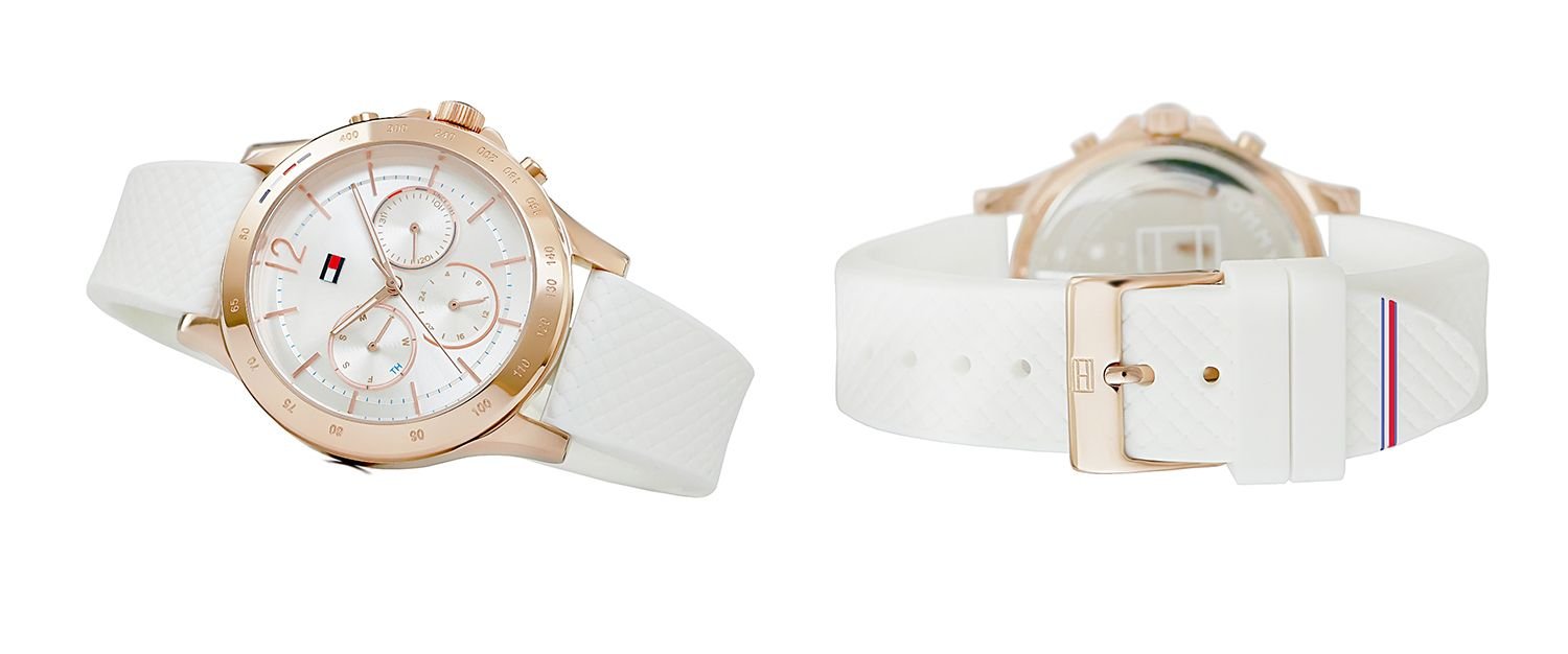 Бренд Tommy Hilfiger создает культовый стиль, который оживает на стыке классики и нового, созданный совместно с людьми, формирующими культуру во всем мире. Высококачественные материалы, уникальный дизайн и насыщенные цвета делают часы Tommy Hilfiger оправдавшими ваши ожидания, став элегантным аксессуаром, подчеркивающим ваш класс. Бренд: Tommy Hilfiger МЕХАНИЗМ: : Кварц Корпус: Нержавеющая сталь КРИСТАЛЛ: Минерал с повышенной устойчивостью к царапинам и случайным ударам Ремешок: Прочный силикон ВОДОНЕПРОНИЦАЕМОСТЬ: 5 бар Гипоаллергенный: не содержит никеля - безопасен для аллергиков Корпус: 38 Циферблат: 30 Толщина: 9,7 Ширина ремешка: 18 Окружность запястья: 165-215 Цветовая гамма: Корпус: розовое золото Циферблат: серебро, часовые метки: розовое золото Стрелки: розовое золото Секундная стрелка: розовое золото Ремешок: белый Ремешок силиконовый Ремешок из силикона - это высококачественный аксессуар, который повышает его ценность. Силиконовые ремешки ценятся за долговечность и универсальность, что делает их популярным выбором среди любителей, которые используют во время занятий спортом.