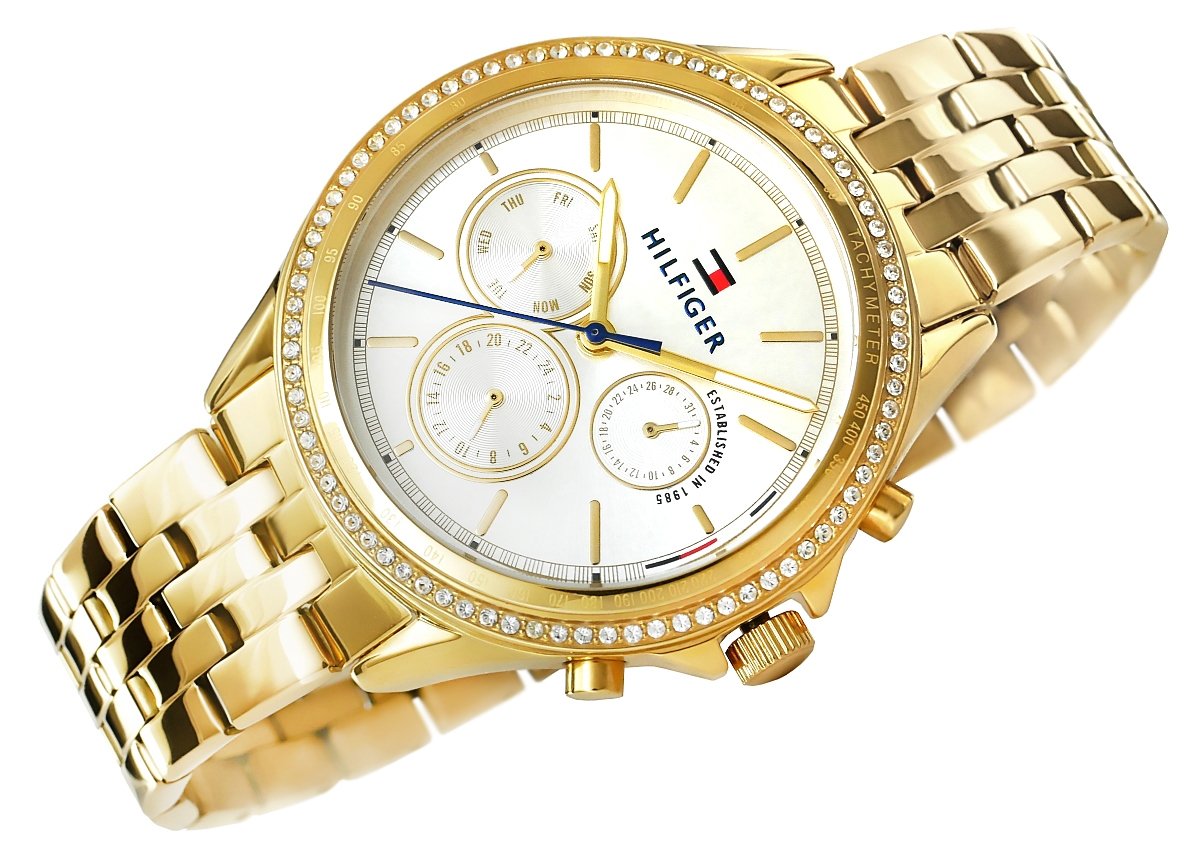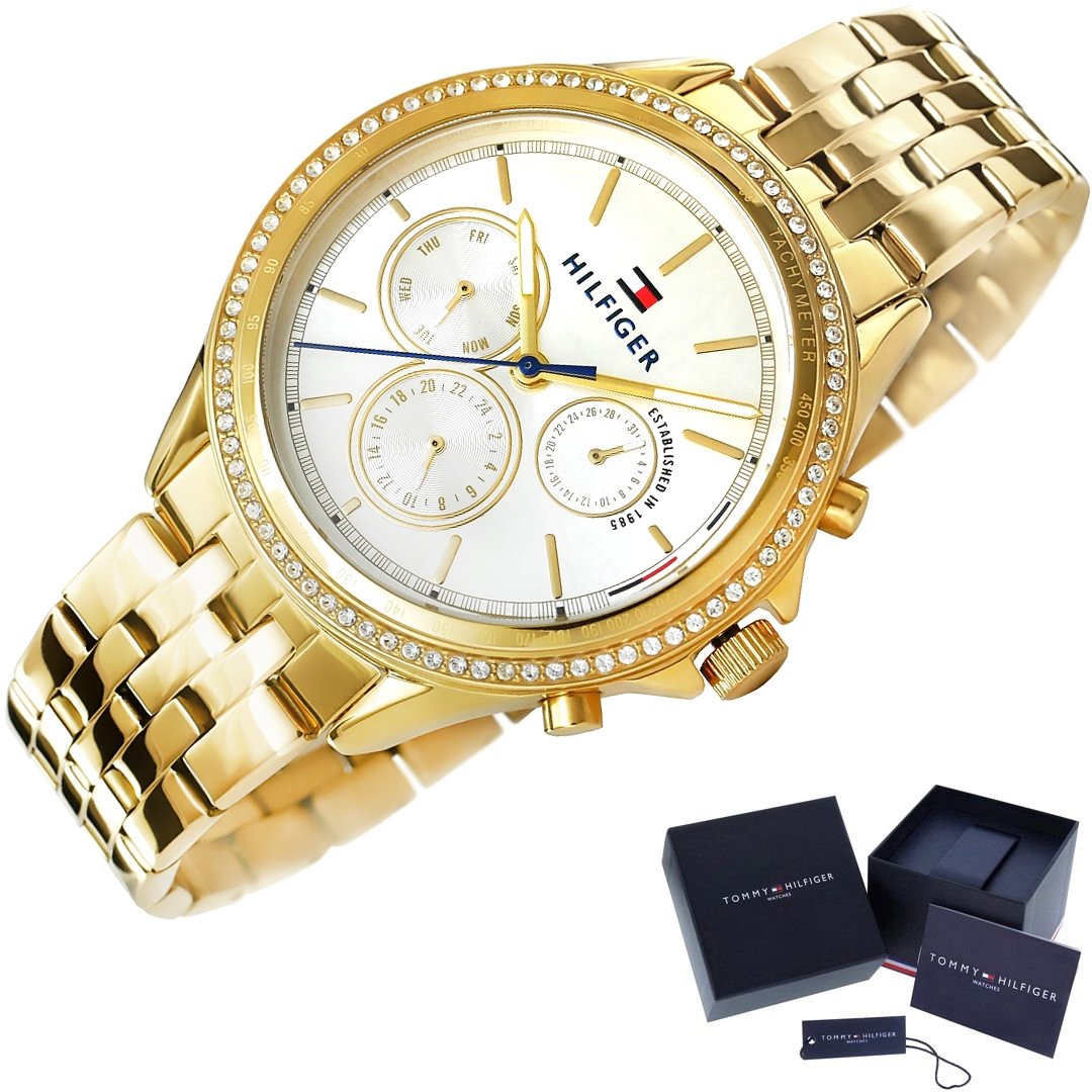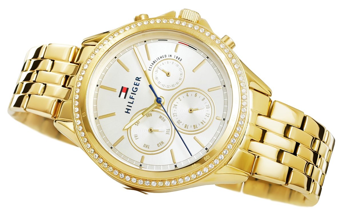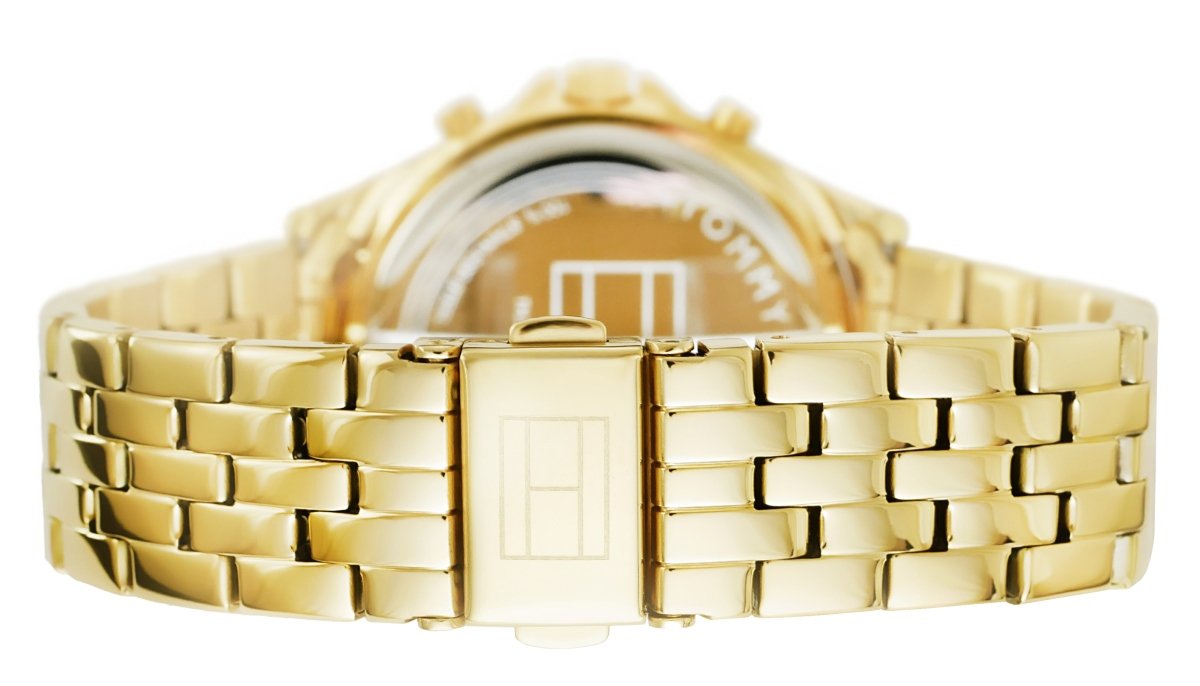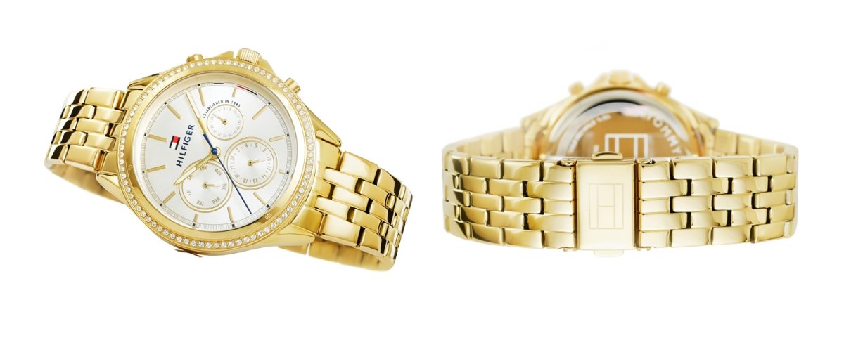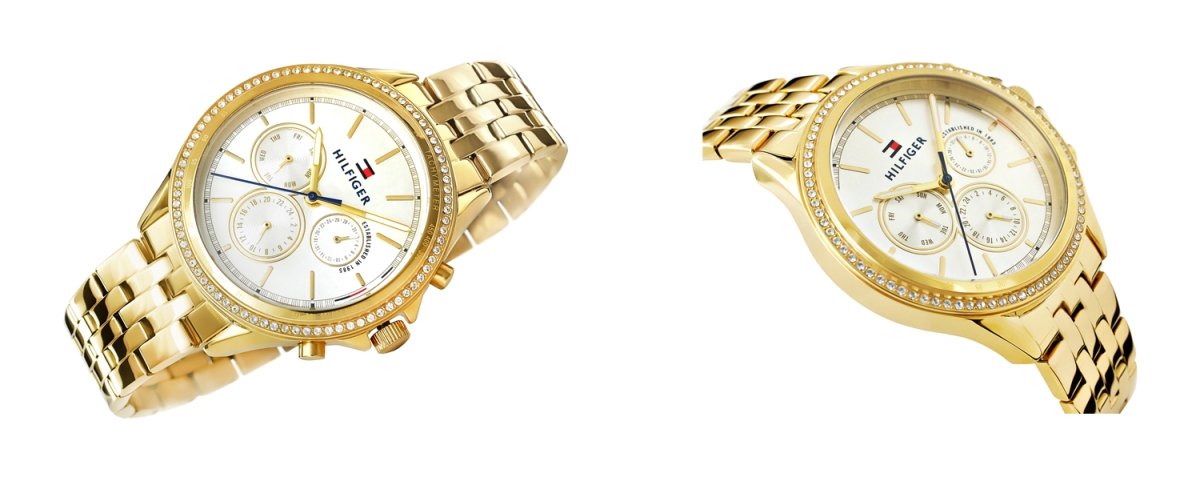 Бренд Tommy Hilfiger создает культовый стиль, который оживает на стыке классики и нового, созданный совместно с людьми, формирующими культуру во всем мире. Высококачественные материалы, уникальный дизайн и насыщенная цветовая гамма позволяют часам Tommy Hilfinger оправдать ваши ожидания, став элегантным аксессуаром, подчеркивающим ваш класс. Бренд: Tommy Hilfiger МЕХАНИЗМ: : Кварц Корпус: Нержавеющая сталь КРИСТАЛЛ: Минерал с повышенной устойчивостью к царапинам и случайным ударам Браслет: Нержавеющая сталь, регулируемый ВОДОНЕПРОНИЦАЕМОСТЬ: 3 бар Гипоаллергенный: без никеля - безопасно для аллергиков Корпус: 38 Циферблат: 30 Толщина: 9,9 Ширина браслета: 18 Окружность браслета: макс. 210 Цветовая гамма: Корпус: золото с цирконами Циферблат: серебро, часовые метки: золото Стрелки: золото Секундная стрелка: золото Браслет: золото