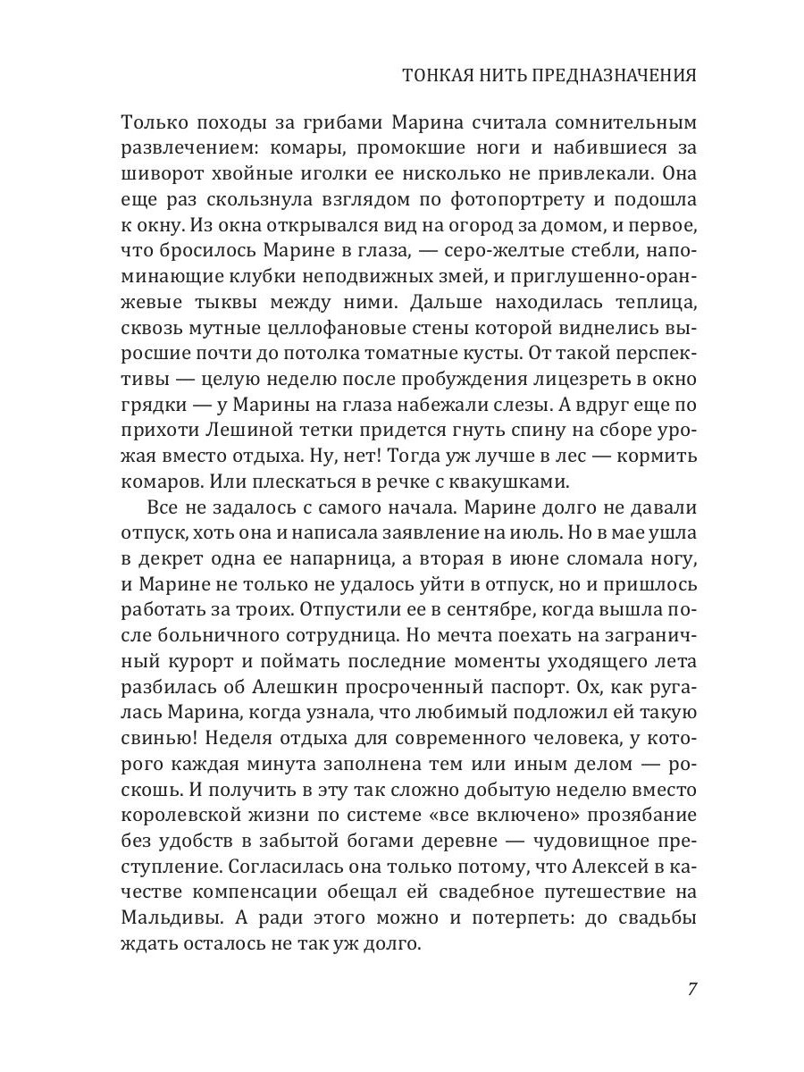 Олеся с детства знала, что должна умереть молодой, как раз в тот момент, когда встретит свою истинную любовь. Эту судьбу она увидела в доме прорицательницы и с тех пор жила с ощущением трагической предрешенности, тем более что все остальные предсказания полностью сбылись. И вот пришло назначенное время, но Олесе очень хочется жить, да и как можно умереть, когда все только начинается?..| Издательство | Т8 RUGRAM |