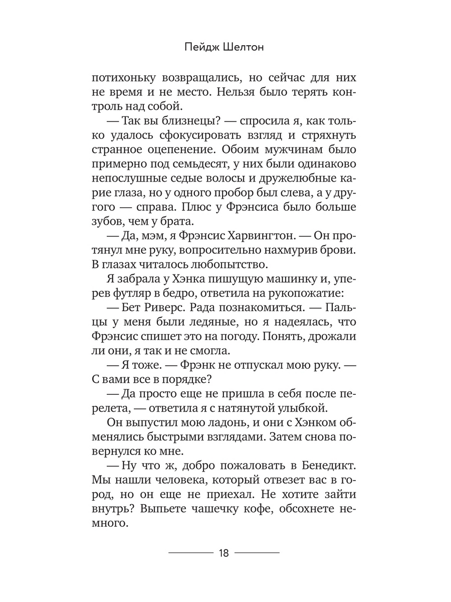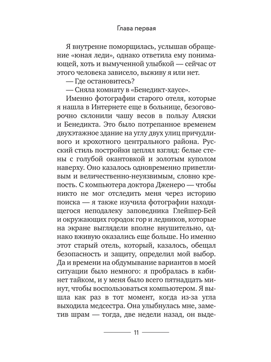 Бет Риверс известна миру как Элизабет Фэйрчайлд. Она много лет пишет триллеры, и однажды ее саму - как будто по сюжету остросюжетного романа - похищает безумный фанат. Бет удается бежать, но от пережитого ужаса она теряет память. В поисках спокойствия писательница оказывается в городе Бенедикт на Аляске, однако и там не обходится без происшествий: незадолго до ее прибытия население и так небольшого городка сократилось на одного человека. Смерть Линды Рафферти признали самоубийством, хотя даже сам шериф в это не верит. Бет ждет, когда поймают ее сталкера, и решает погрузиться в расследование смерти Линды, но это дело пробуждает ее воспоминания о собственном похищении…| Издательство | Дом историй |