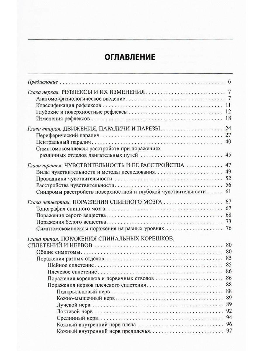 В руководстве описываются основные виды двигательных, чувствительных и вегетативных нарушений, клинические и вспомогательные методы исследования этих функций. Отдельные главы посвящены топической диагностике поражений спинного мозга и специальных нервов, черепно-мозговых нервов и анализаторов, мозгового ствола и мозжечка, подкорковых отделов и больших полушарий мозга, а также мозговых оболочек. В приложении представлена методика краткого исследования нервной системы при поликлиническом приеме и массовых осмотрах. Книга рассчитана на невропатологов, нейрохирургов и врачей других специальностей; она может быть полезной и студентам медицинских институтов при изучении общей части невропатологии.| Издательство | МЕДпресс-информ |